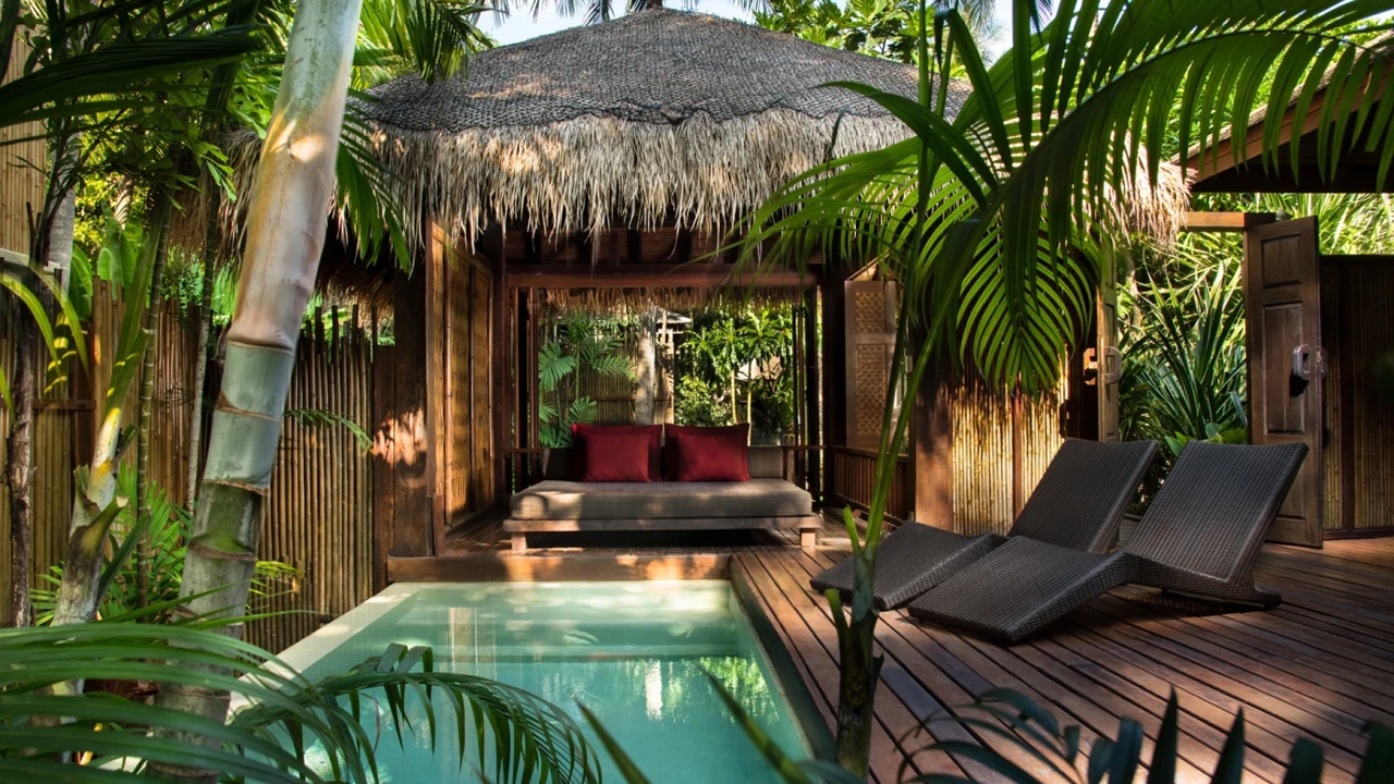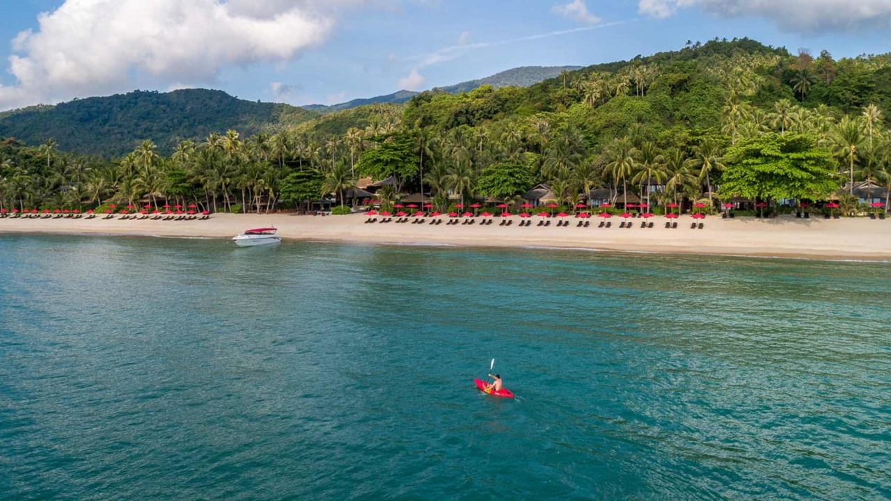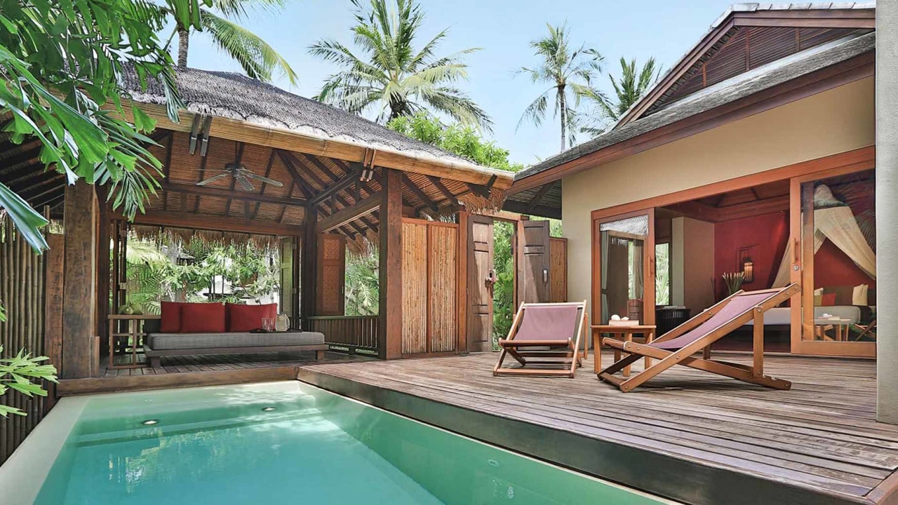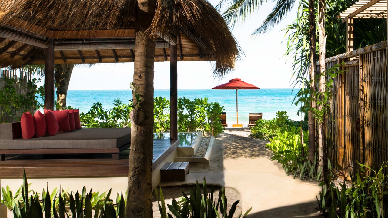 This highly romantic resort, set between idyllic mountains and crystal-clear sea, boasts modern architecture infused with the tones and textures of traditional Thai design. Suites and villas contain luxurious features such as expansive terraces, private gardens, infinity pools and panoramic beachfront vistas, all enclosed within high wooden walls to ensure maximum privacy.