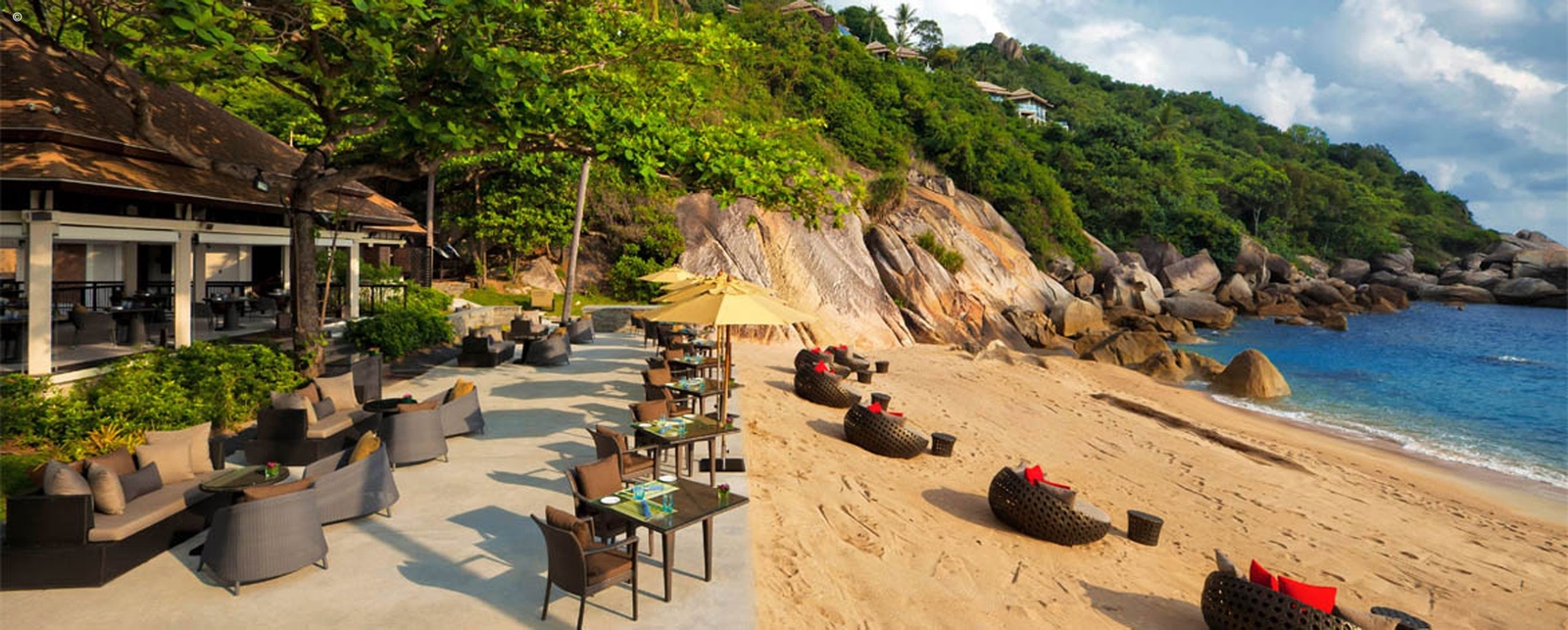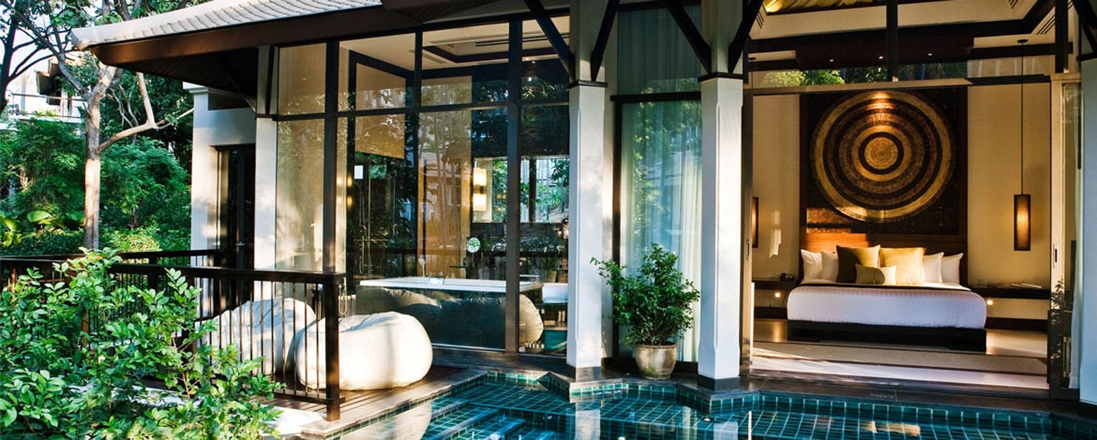 The collection of villas here are all beautifully styled with private pools, lounge decks and personal hosts. Traditional Thai design of delicately carved wooden furnishings dress the entire property which boasts three restaurants, two bars and an award-winning hydrotherapy spa.