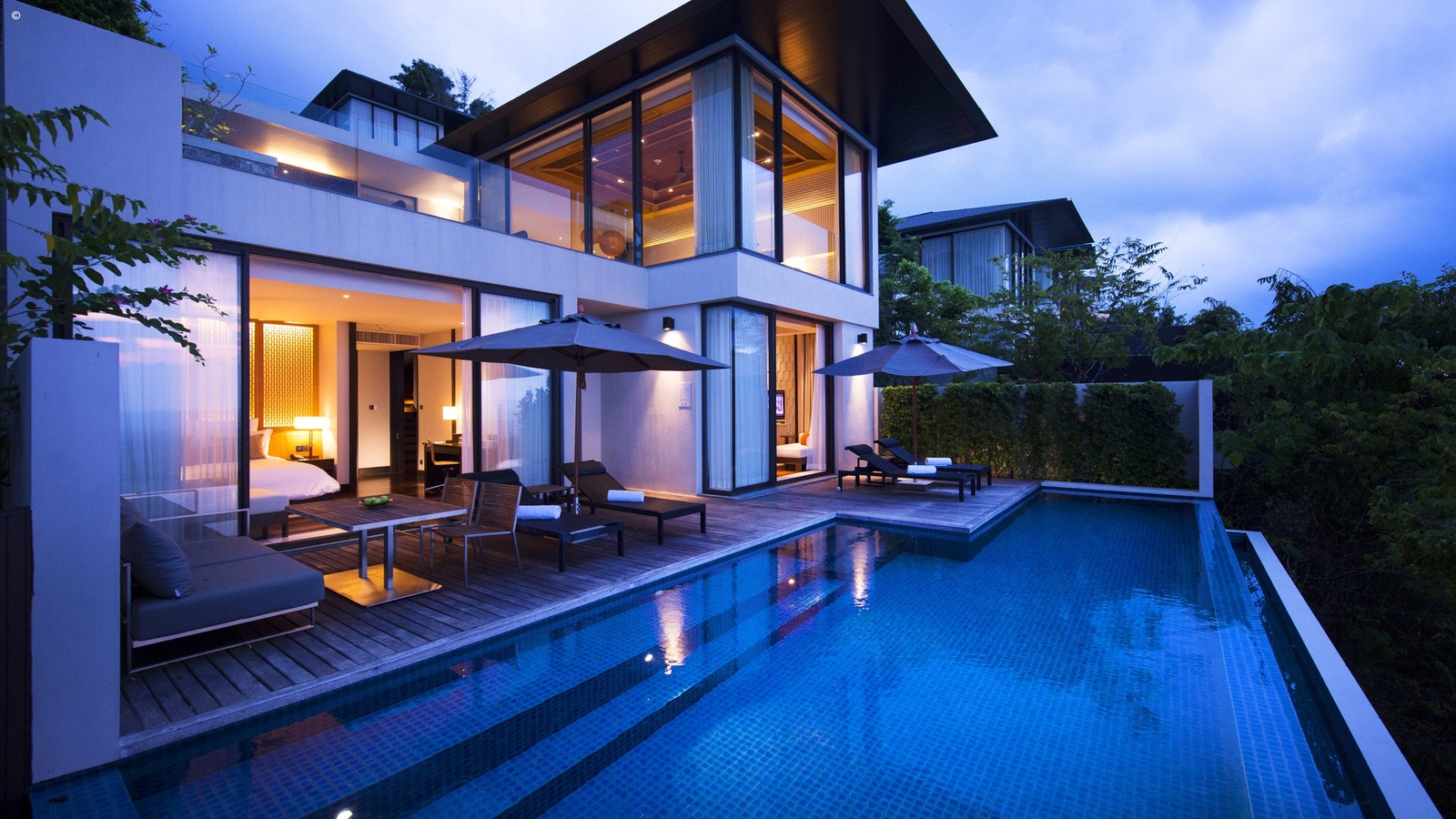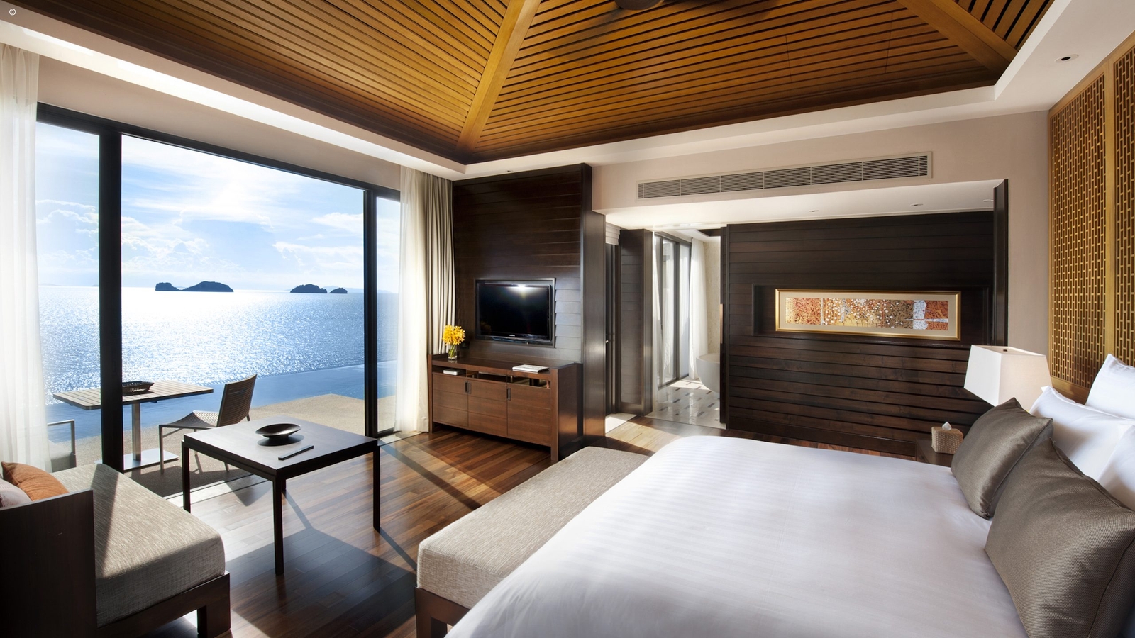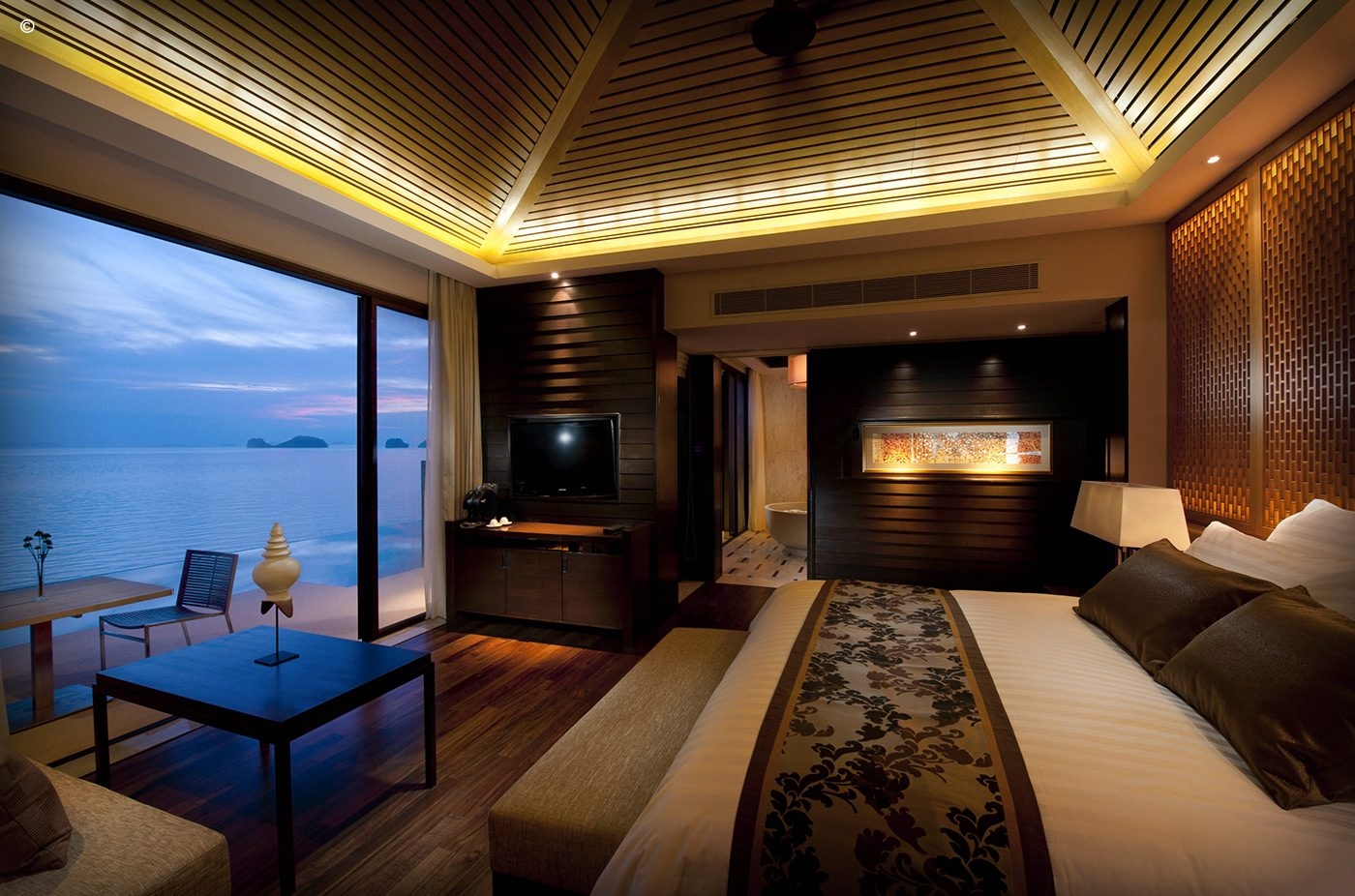 80 contemporary villas stand on stilts on the hill side. All feature huge 10m (30 foot) private infinity pools and floor to ceiling windows facing west out to sea and an always spectacular sunset. All also offer large soaking tubs, fast wi-fi and an in room entertainments system, with upgraded villas enjoy a second floor and dining area.