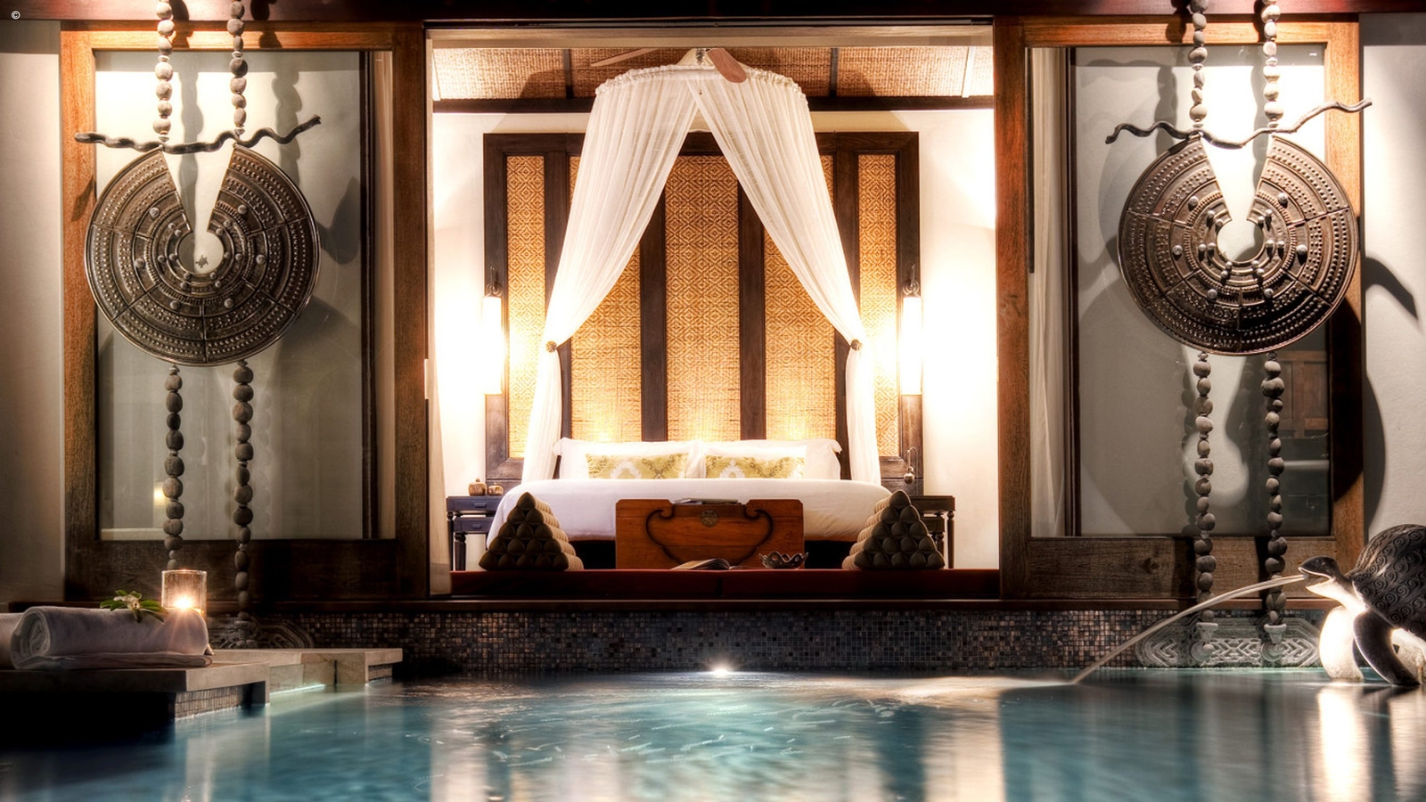 There are 91 sophisticated private villas, each with their own pool, all large, airy and classically Thai with huge windows, light fabrics and dark woods.