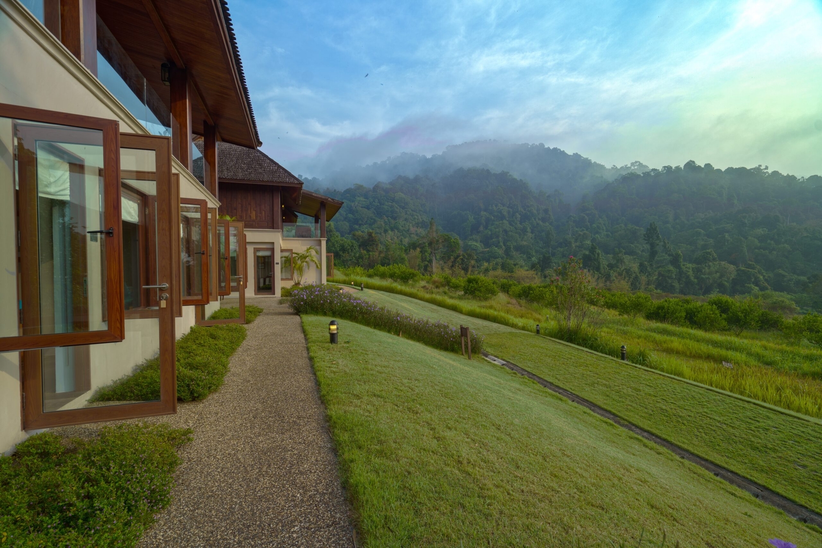 Begin with yoga at dawn or a leisurely walk among rice paddies and vegetable gardens, before setting out to discover the wonders of the rainforest. Back at the resort, the infinity pool seemingly spills into the surrounding hills. From here, the horizon becomes a living panorama of forest, farmland and sky, shifting in colour as the day passes from morning to the glow of sunset. The spa provides another form of retreat, where traditional Thai treatments restore balance after a day outdoors.