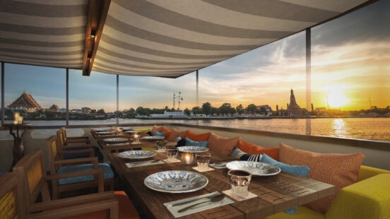 If you’re after a more romantic way to see the canals of Bangkok, take a champagne dinner cruise alongside the Chao Phraya River. You’ll be welcomed with a glass of champagne before sitting down to an exquisite six-course dinner. As you cruise along the river, enjoy captivating night-time views of the city from the comfort of the boat’s cosy lounge sofas.