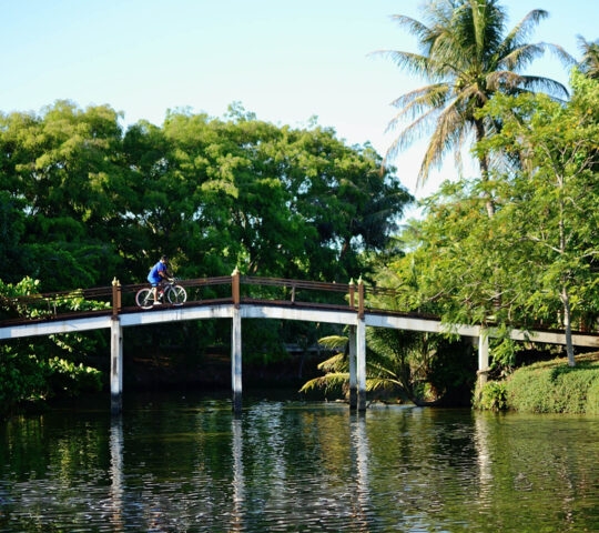 Bang Krachao is an idyllic network of peaceful roads, waterways and villages just moments from Bangkok’s bustling centre, an area so wonderfully untouched by modern life that it’s easy to forget you’re still in the city. This two-hour bike ride takes you past local markets, traditional Thai houses and golden temples, all under the peaceful canopy of tropical jungle. (If you’re cycling here on a Saturday or Sunday, you will also be able to experience the weekend Bang Nam Phueng market.)