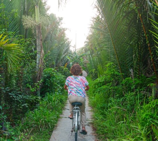 After leaving Ho Chi Minh you’ll drive for an hour and a half to Ben Tre, the gateway to the Mekong Delta. Spend some time exploring sprawling rice paddies and colourful fruit farms. Arrive at the quaint An Khanh hamlet, where you’ll visit a small home factory that makes the traditional dish of sticky rice covered by coconut leaves. Meet with the owner and her team who will teach you about how they use century-old methods to make this tasty cake. You will also meet a local family in Quoi Son village, where you can sample exotic fresh fruits in an orchard. Then take a peaceful thirty-minute boat trip, followed by a bicycle ride along narrow village lanes. Next, board a sampan and cruise along the narrow canals of the Mekong to a farmer’s house where a lunch of Mekong Delta specialties will be served.