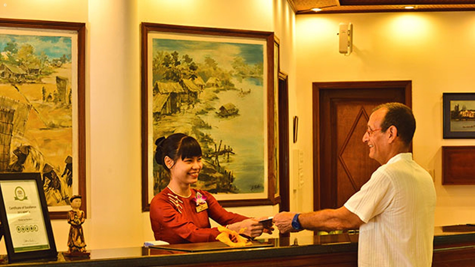 Composed of 92 rooms, including 8 luxurious suites, the hotel features authentic Vietnamese decoration and beautiful wood flooring. You won’t fail to be charmed by the unique combination of traditional artefacts and international-standard amenities. Balconies offer wonderful views over the river, pool or gardens filled with exotic plants. If dining at the hotel, the Spices Restaurant offers European and Vietnamese dishes overlooking the Hau River, with both indoor and outdoor seating.