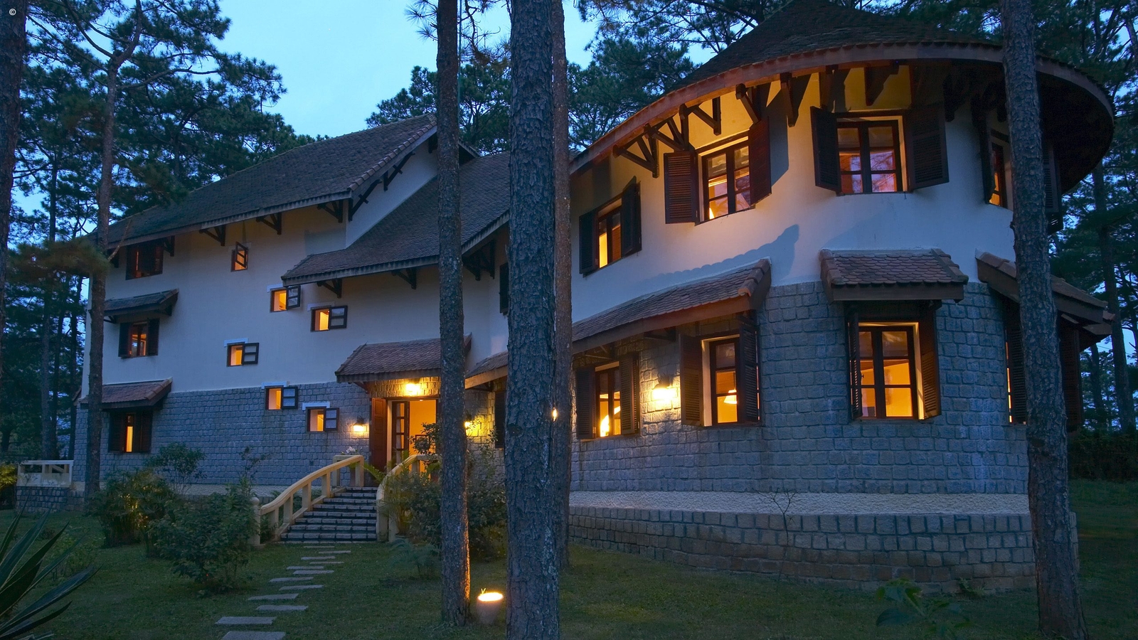 Restored French colonial villas in the green hills outside of Dalat