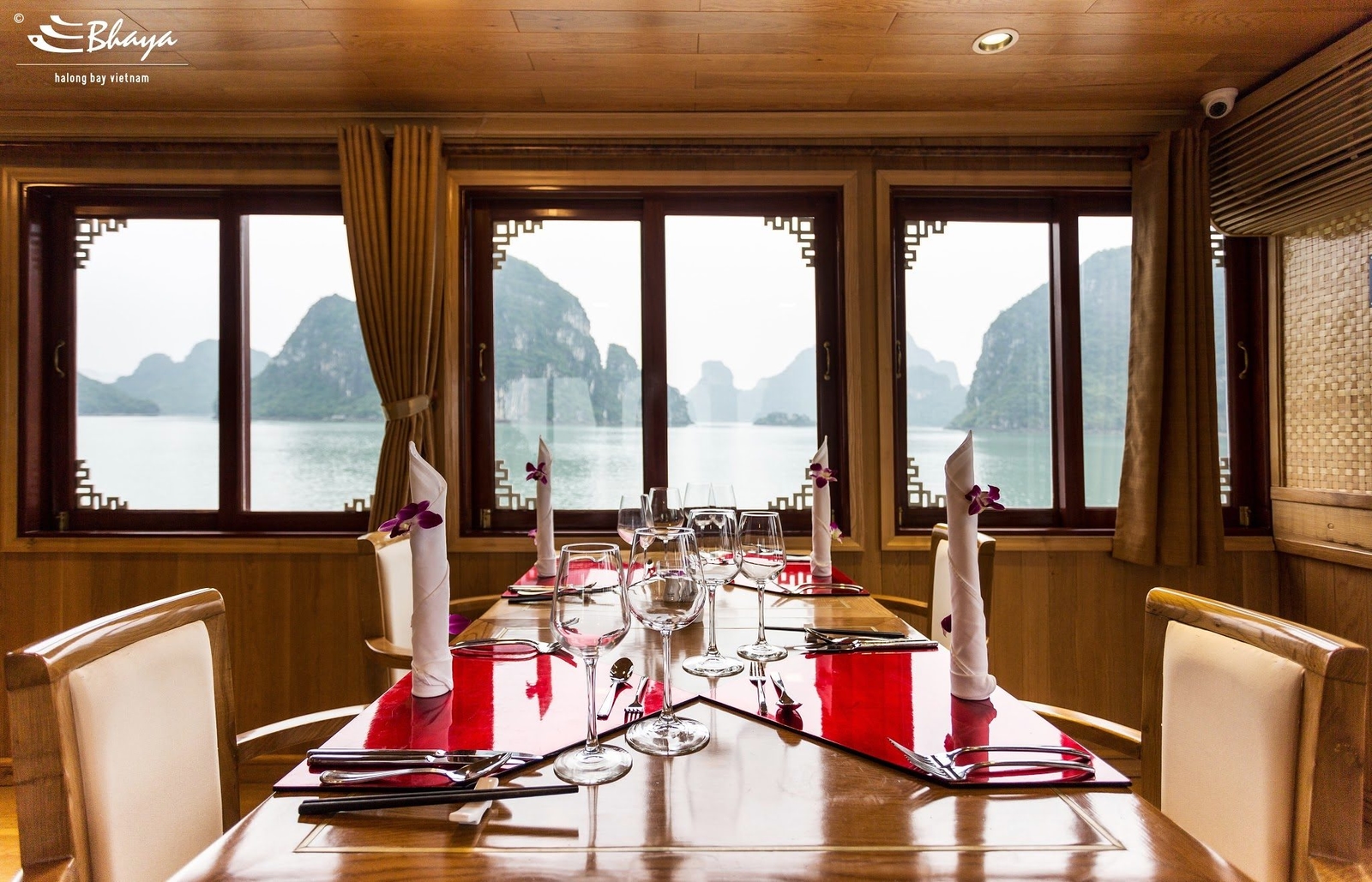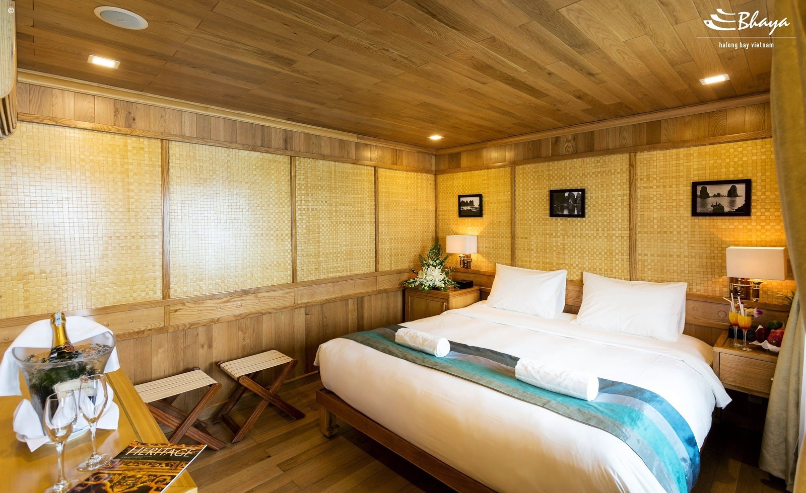 Combining luxurious comfort with a traditional oriental design, this triple deck, five cabin boat is a charmingly luxurious way to discover the area. All are spacious and feature private balconies from which to admire your spectacular surroundings. Families can use connecting cabins.