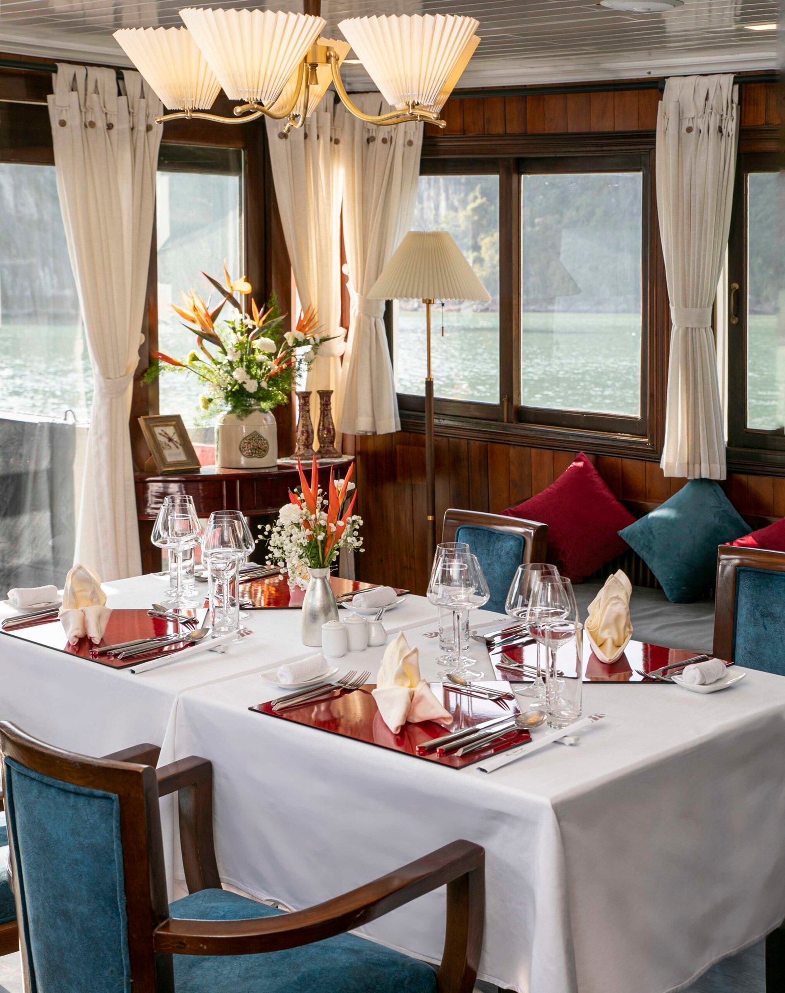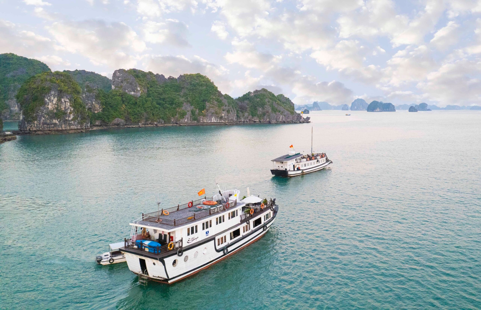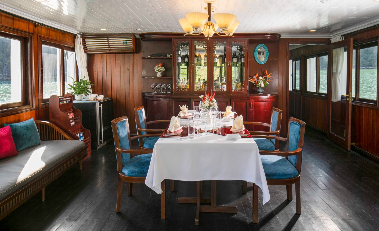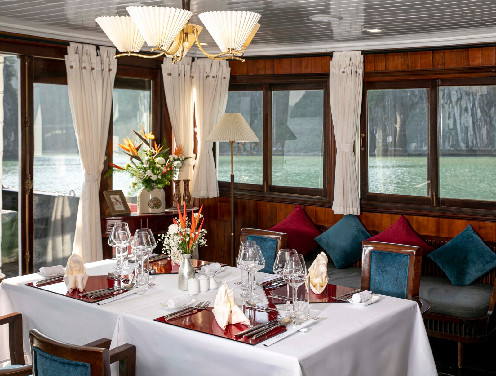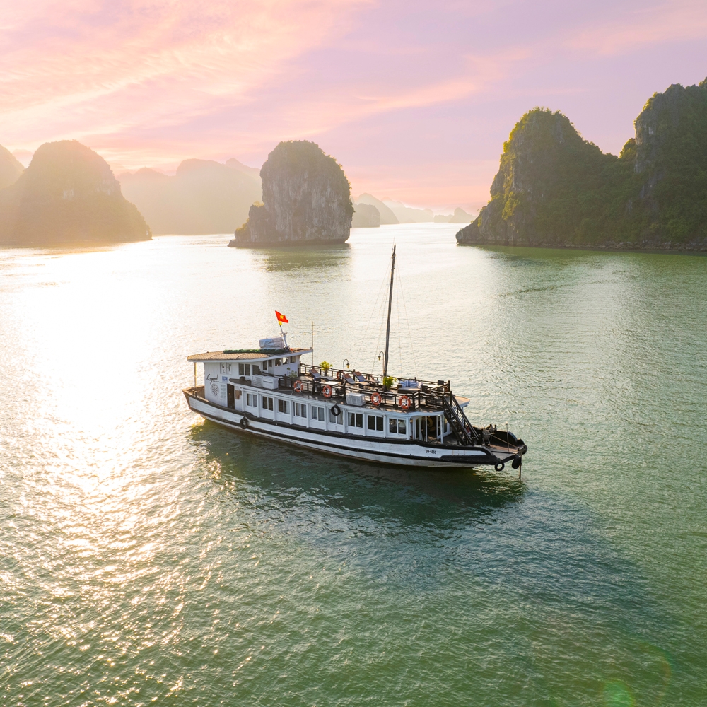 With just two cabins on board its single deck, the slim Bhaya Legend II is perfect for small parties wishing for a more personal experience of Halong Bay. Explore the limestone islets and emerald waters with a highly flexible private charter catered to your specific requirements and personal interests.