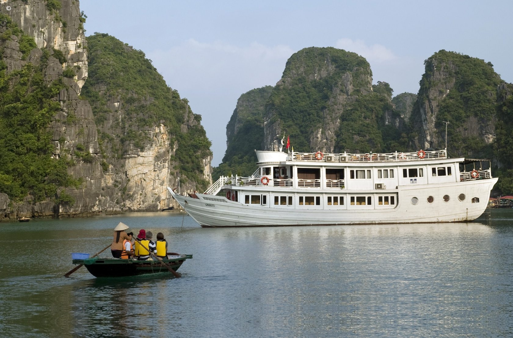 Sleeping eight passengers in total, the ship’s crew of captain, chef, deckhand and hostess will be on hand at all times to fulfill your needs. The teak-lined cabins themselves may be modestly sized, but are furnished in an inviting contemporary-Vietnamese style, complete with double or twin beds, crisp linen, hot-water showers and air conditioning.