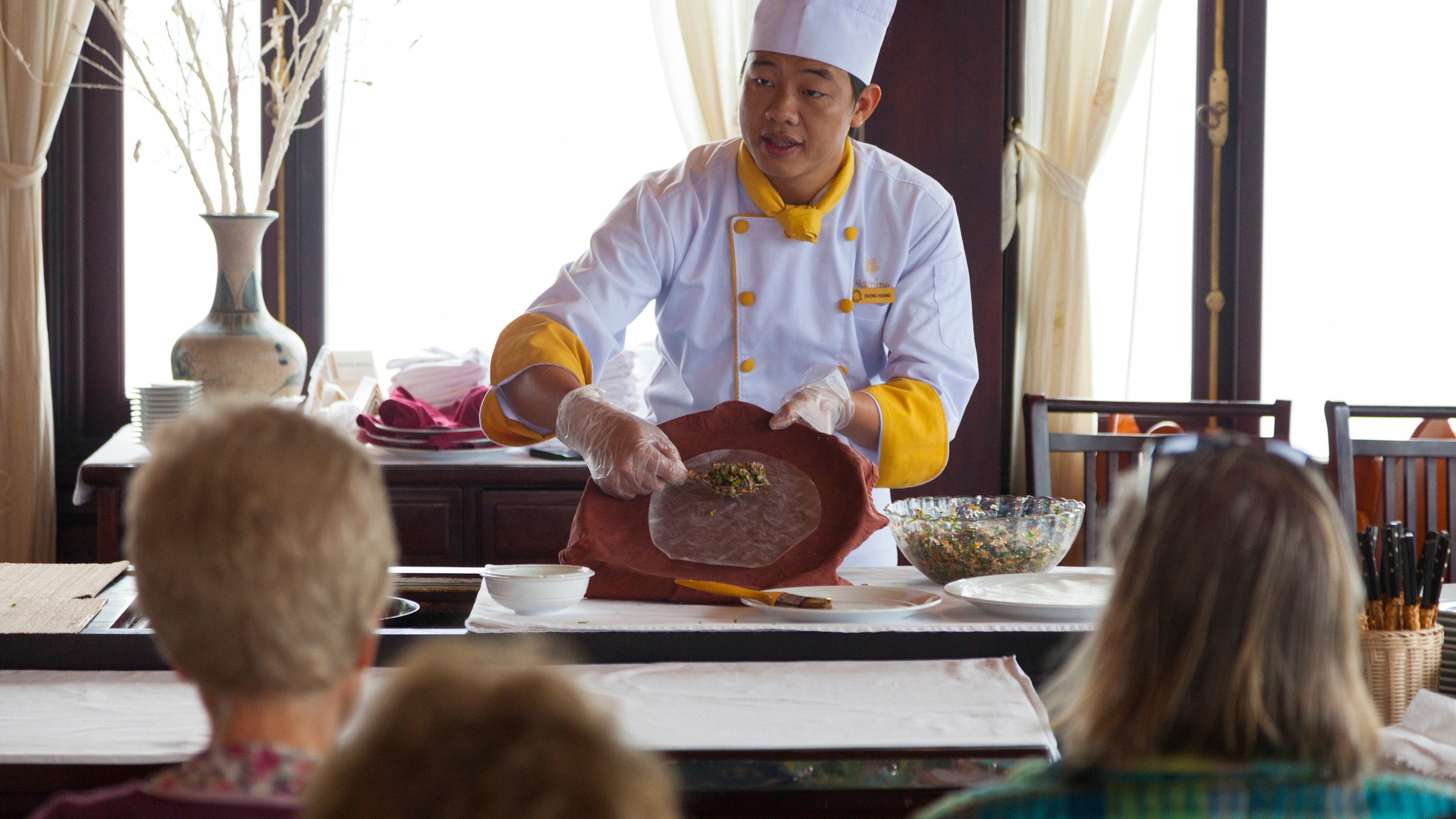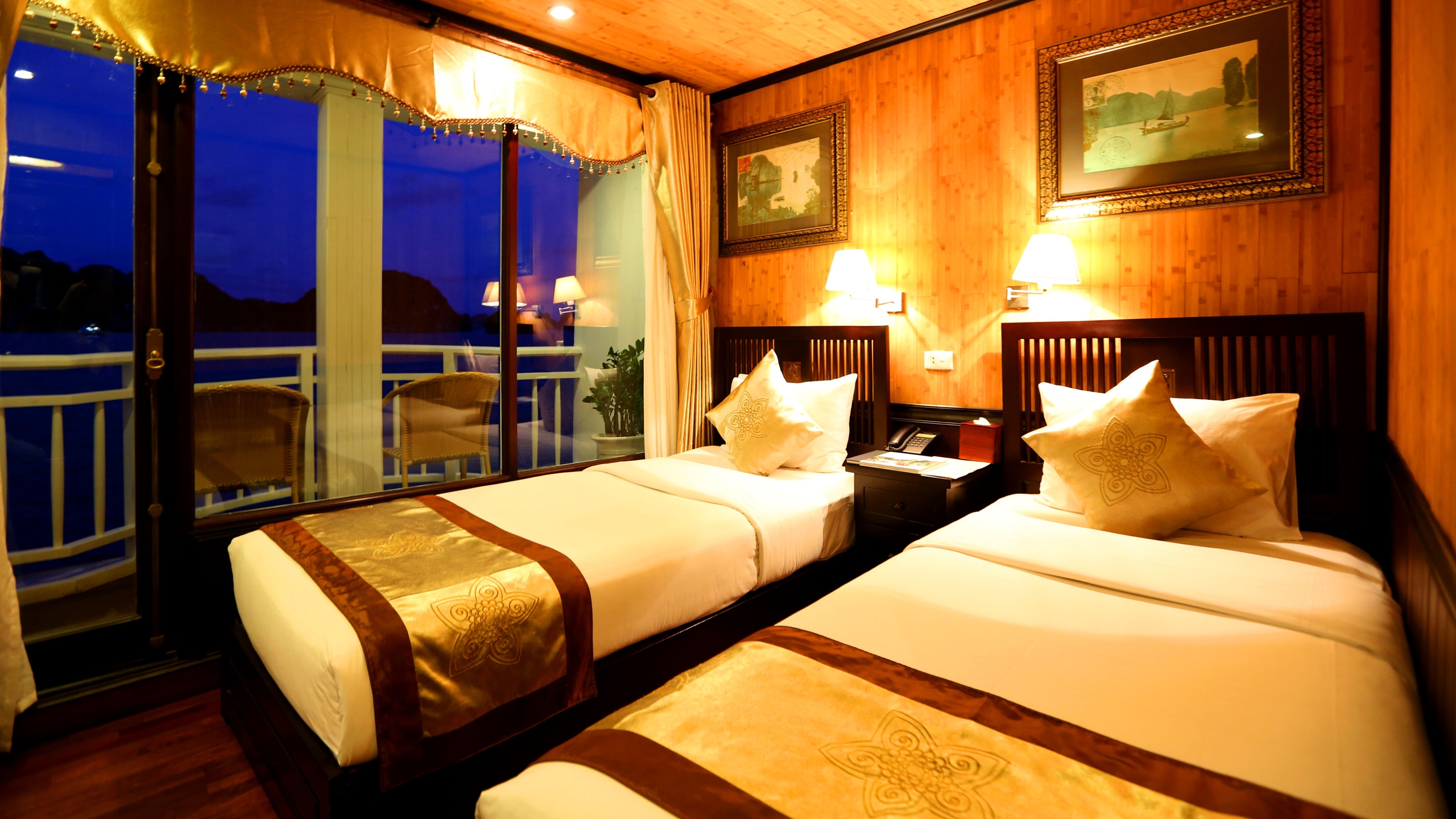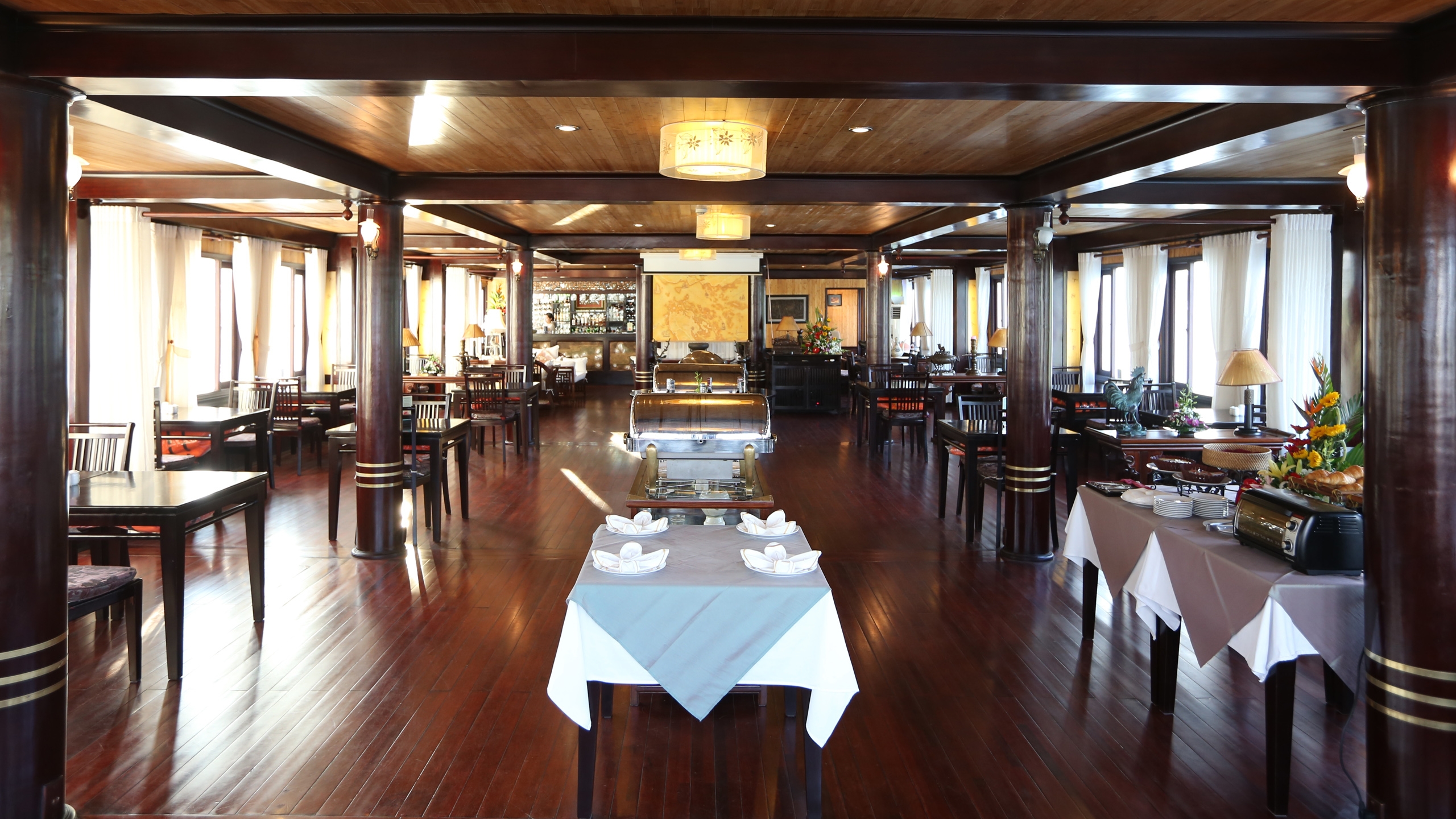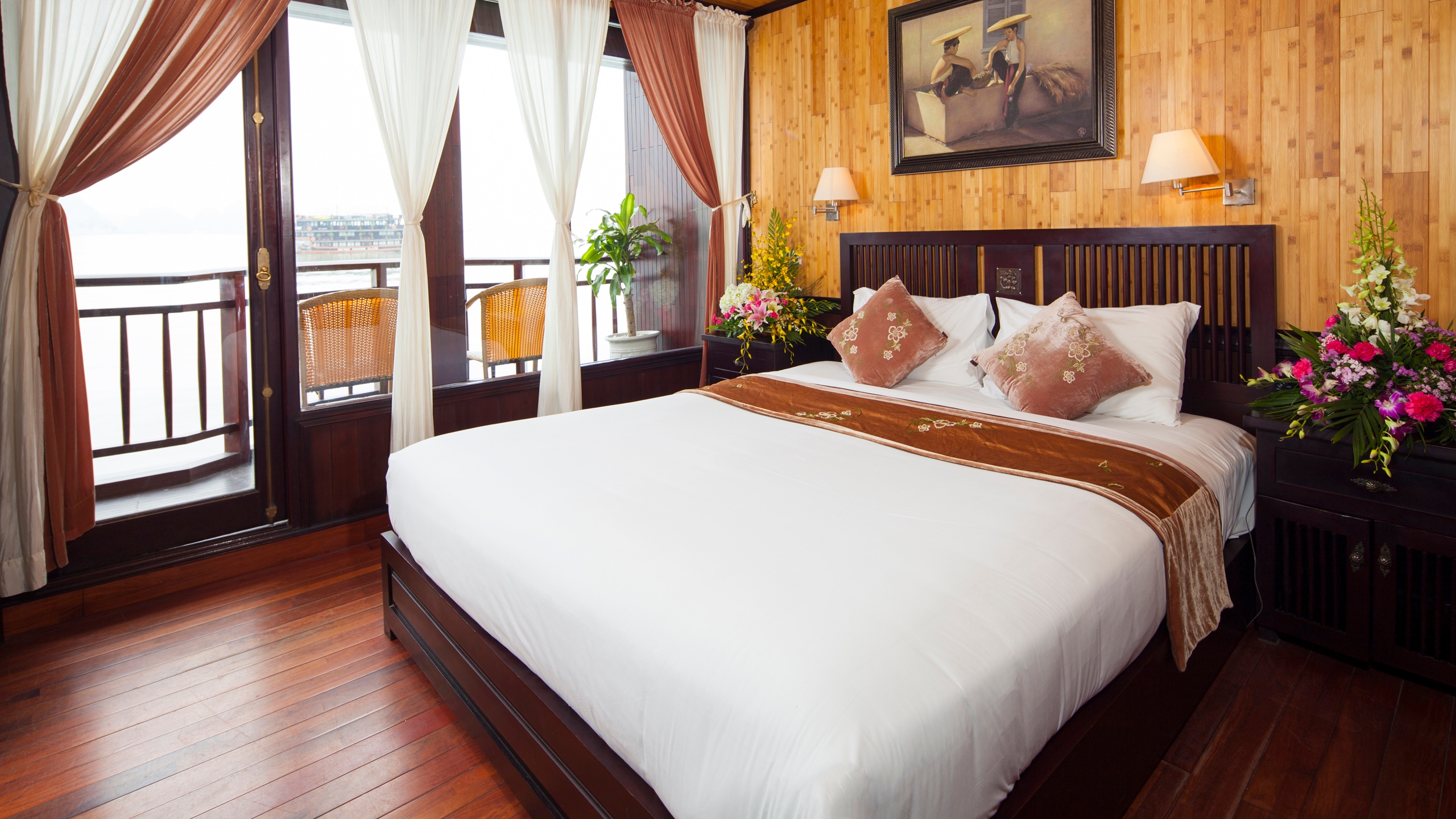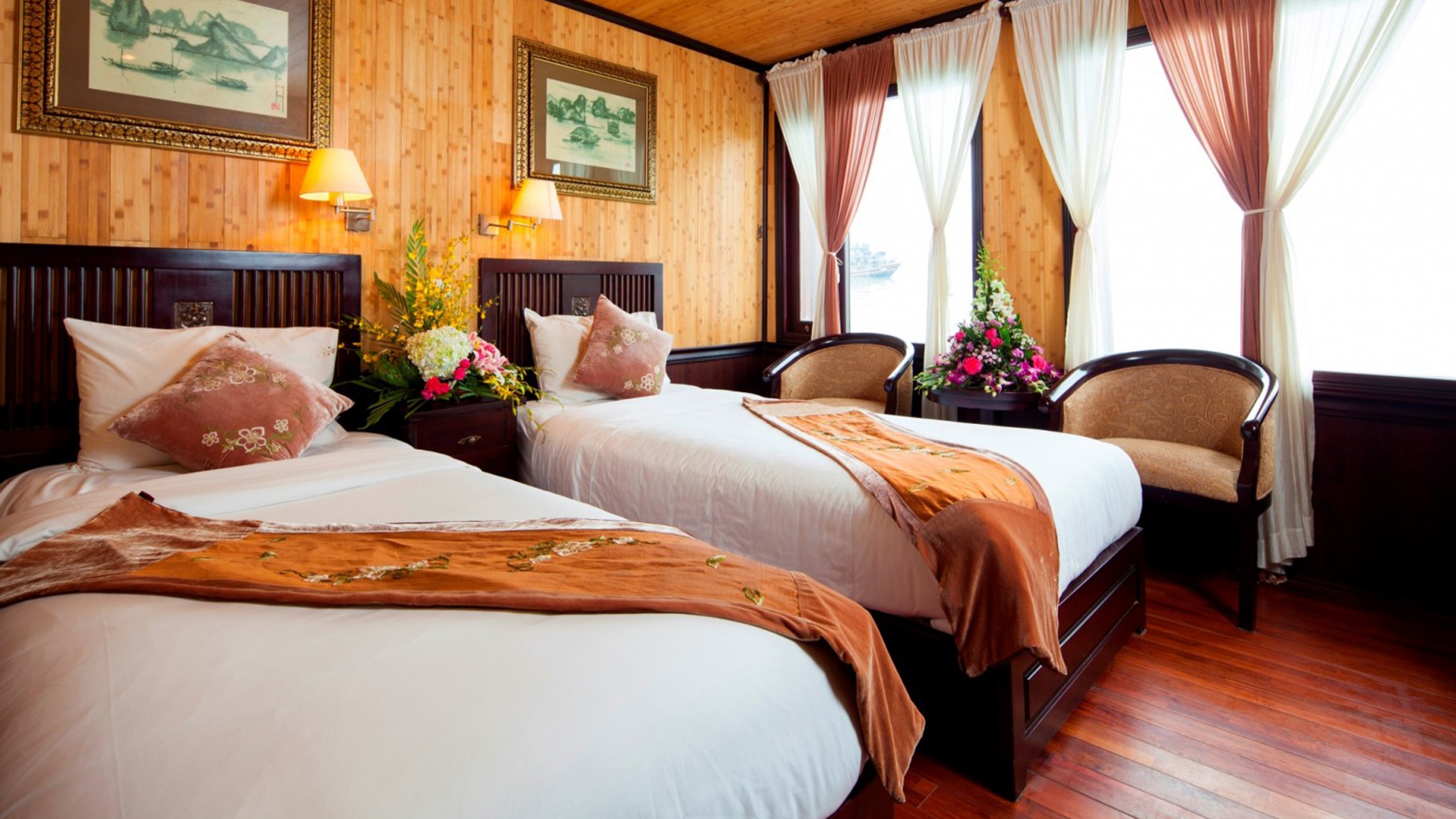 Reminiscent of the traditional Vietnamese junk boat, the elegant Jasmine is a large vessel which offers a range of amenities and activities for your tour of the UNESCO protected Halong Bay. The 24 cabins on board combine comfort with classic design and modern-day amenities, with accommodation ranging from superior and deluxe rooms to the regal Jasmine Junior Suites.