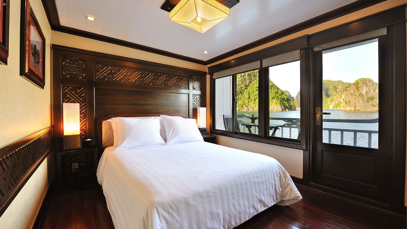 There are seventeen traditionally furnished cabins, some of which have balconies for a private vantage point of the huge limestone karsts and the mirror-like water of the bay, while the Paradise Suite has a private Jacuzzi.