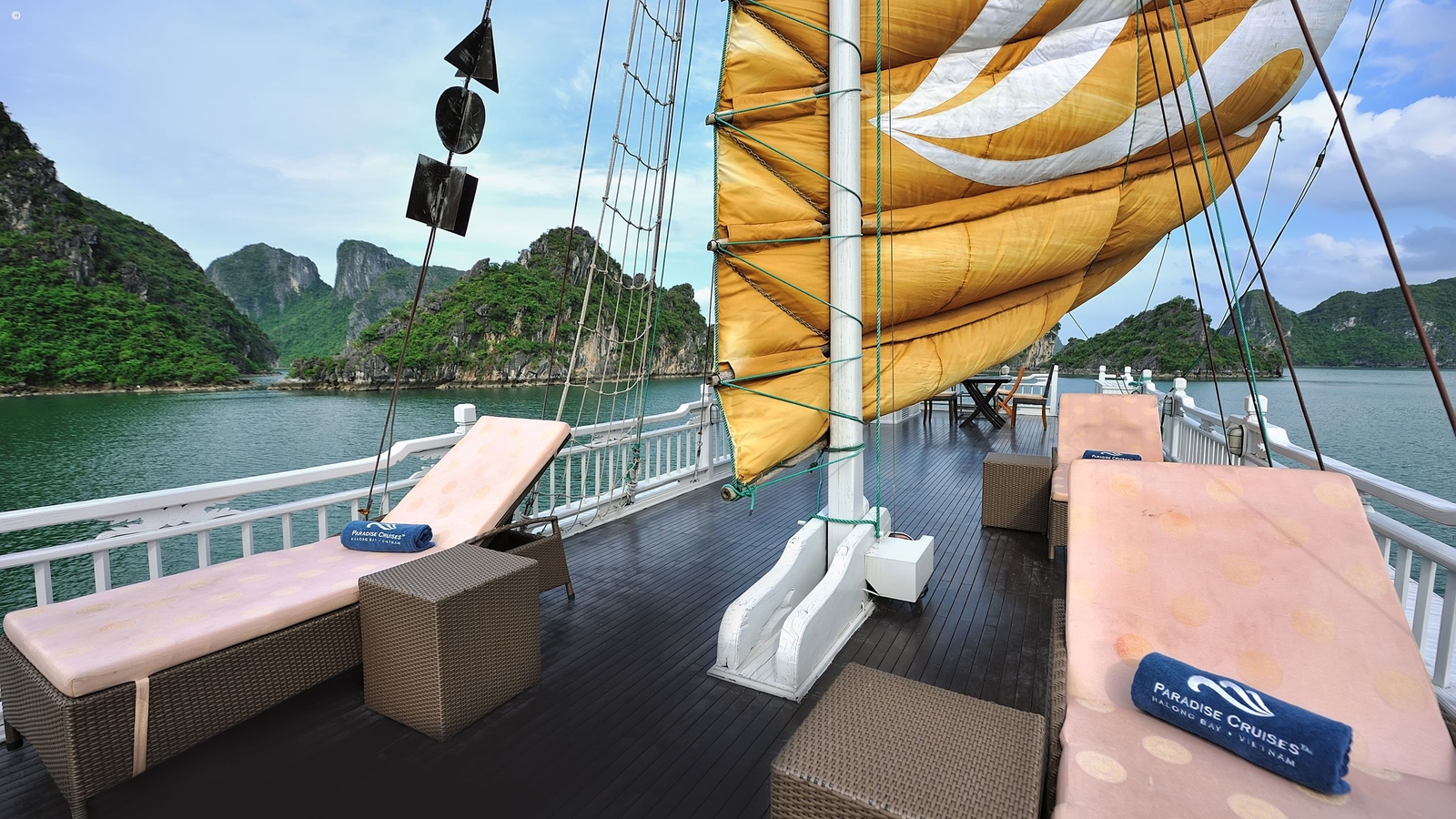 Choose to dine in the stylish dining room or arrange for a BBQ on the sundeck, to better observe your outstanding surroundings. You can also spend some time with your private chefs in the full-equipped kitchen below deck and learn more about the preparation of Vietnamese cuisine.