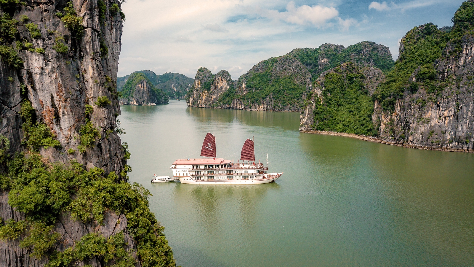 Three decks of polished woodwork, Indochine decor and panoramic views of the UNESCO-protected bay fill this cruiser. Despite its large size, the Ginger is home to just ten cabins, ensuring there is still an intimate atmosphere awaiting you on board.