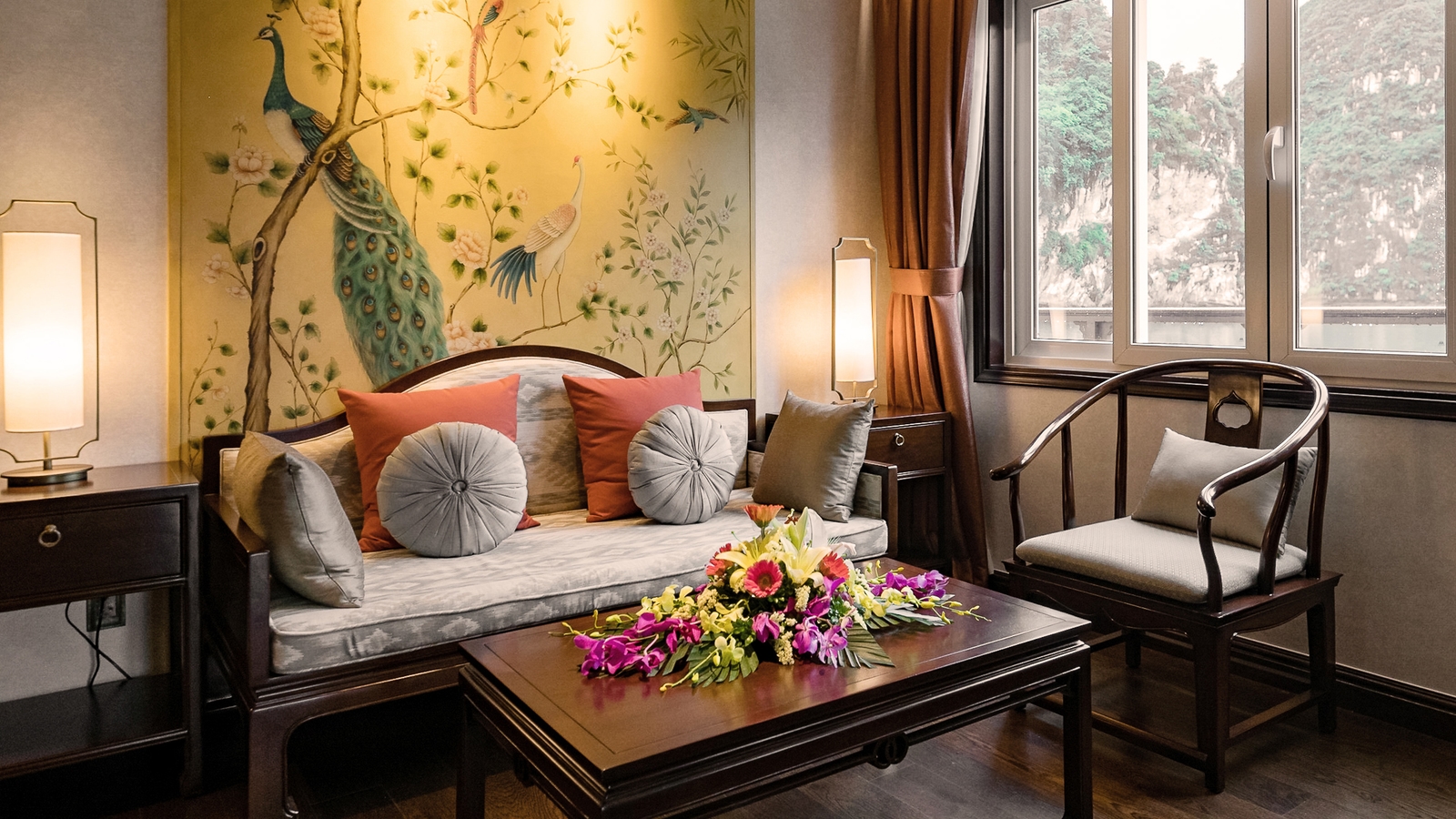 Refined Asian furnishings and modern luxury come together on the Ginger junk to create an elegantly relaxed experience in Lan Ha, an area which is quieter than Halong Bay.
