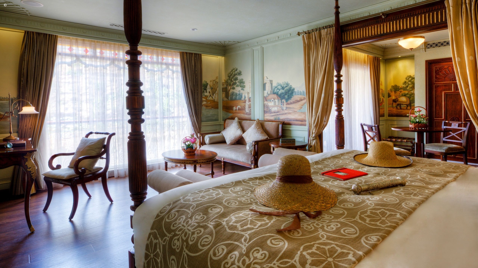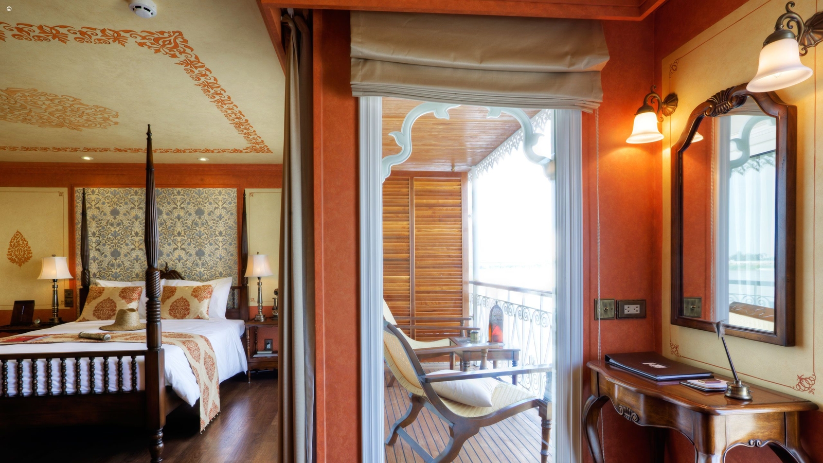 Of the 26 cabins aboard the Jahan, you’ll find a variety of guest rooms and suites. These start from the 30sqm Superior Staterooms, which come with large outdoor balconies and queen-sized beds and move up to the 36sqm signature staterooms, with their wooden poster beds and thoughtful details such as treasure chests to store your belongings.