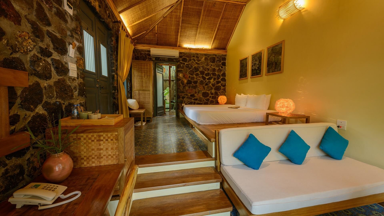 Offering a choice of 16 rooms that are spread across eight independent bungalows, they are set in the serene gardens of Tam Coc, enjoying natural aromas and verdant views filled with local flora. Each room has its own private terrace, offering vistas of limestone karsts or sprawling rice fields, while the interiors are spacious and tastefully decorated, utilising features such as stone, wood, traditional tiles, bamboo and ceramics to create a natural and authentic character to each room. That sense of authenticity spreads throughout the resort, with the construction designed to resemble a traditional Tonkinese village, with its typical stone houses and tiled roofs.