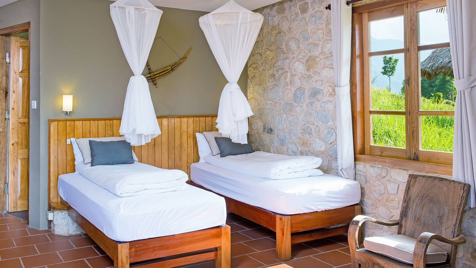 Stay in one of the 25 charming and rustic bungalows assembled from local white granite and tastefully decorated with simple yet pleasant interior and wooden furnishings. Based on sustainable principles, the lodge is environmentally sympathetic to its remarkable surroundings through solar-powered systems. Indulge in traditional Vietnamese dishes within the restaurant situated in the main lodge building.