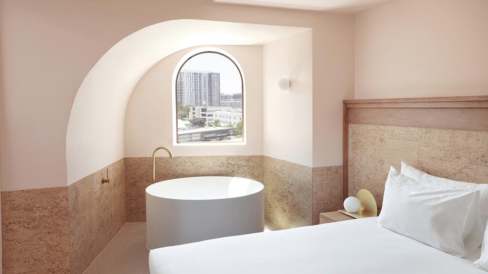 There are 175 rooms, with views of the city or the pool, and some encompass private balconies and separate living areas. Décor pays homage to 1950s Miami, and airy spaces are enhanced with partially cork-panelled walls, marble flooring, and oak features. Deep, circle-shaped baths, with brass taps, sit in the middle of the rooms, or by the windows, offering dreamy vistas over the treetops.