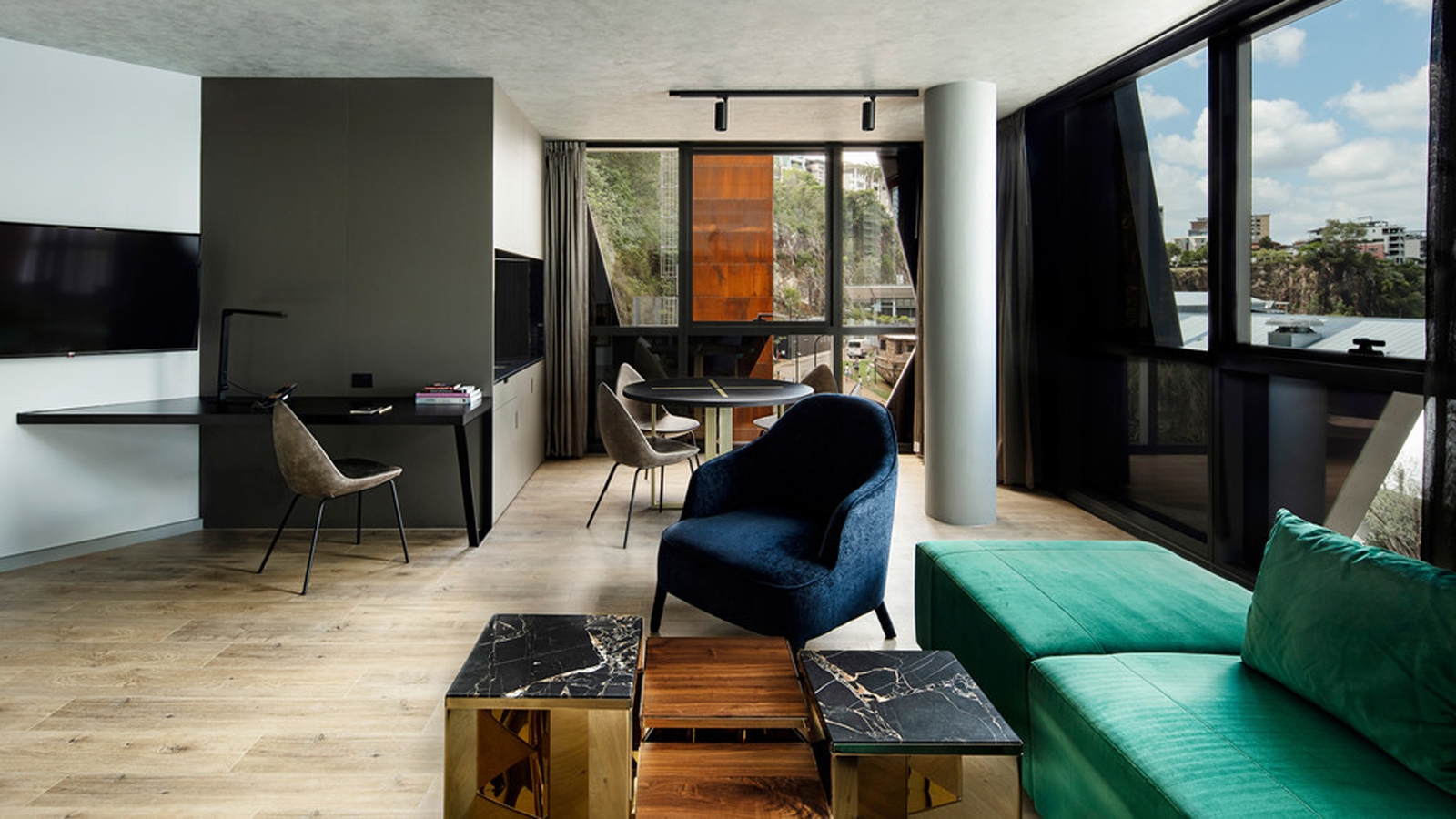 With easy access to the city’s trendiest hub, The Fantauzzo features 166 stylishly designed suites, looking out across the river or the promenade. Contemporary furnishings complement muted colour schemes, enhanced by emerald and navy-blue velvet seating and bedding. Fantauzzo’s artwork adorns the walls of both the suites and the communal spaces, and guests can enjoy complimentary art tours with a resident art expert, and access to in-room art channels and libraries.