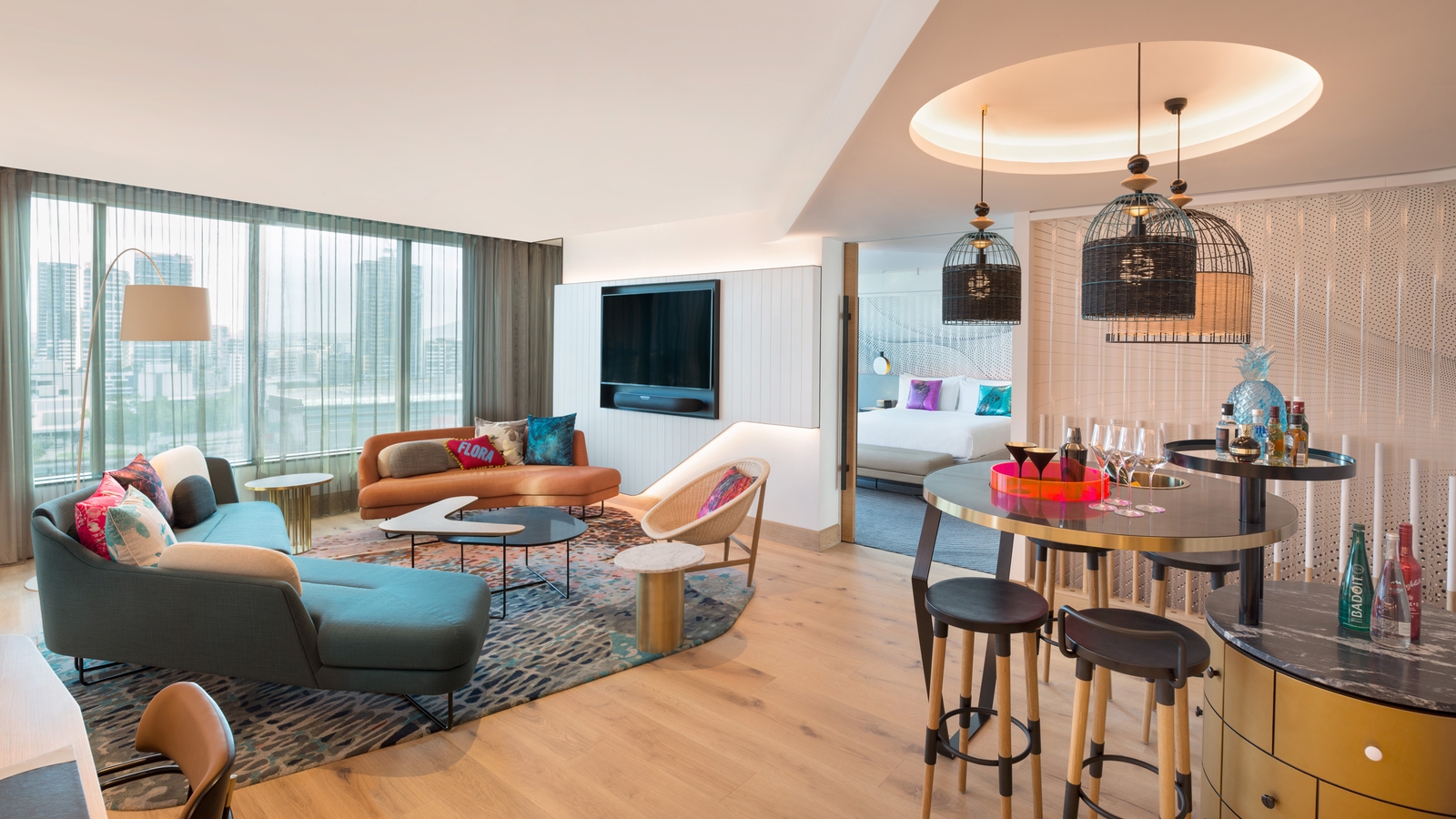 With easy access to the city’s trendiest hub, The Fantauzzo features 166 stylishly designed suites, looking out across the river or the promenade. Contemporary furnishings complement muted colour schemes, enhanced by emerald and navy-blue velvet seating and bedding. Fantauzzo’s artwork adorns the walls of both the suites and the communal spaces, and guests can enjoy complimentary art tours with a resident art expert, and access to in-room art channels and libraries.