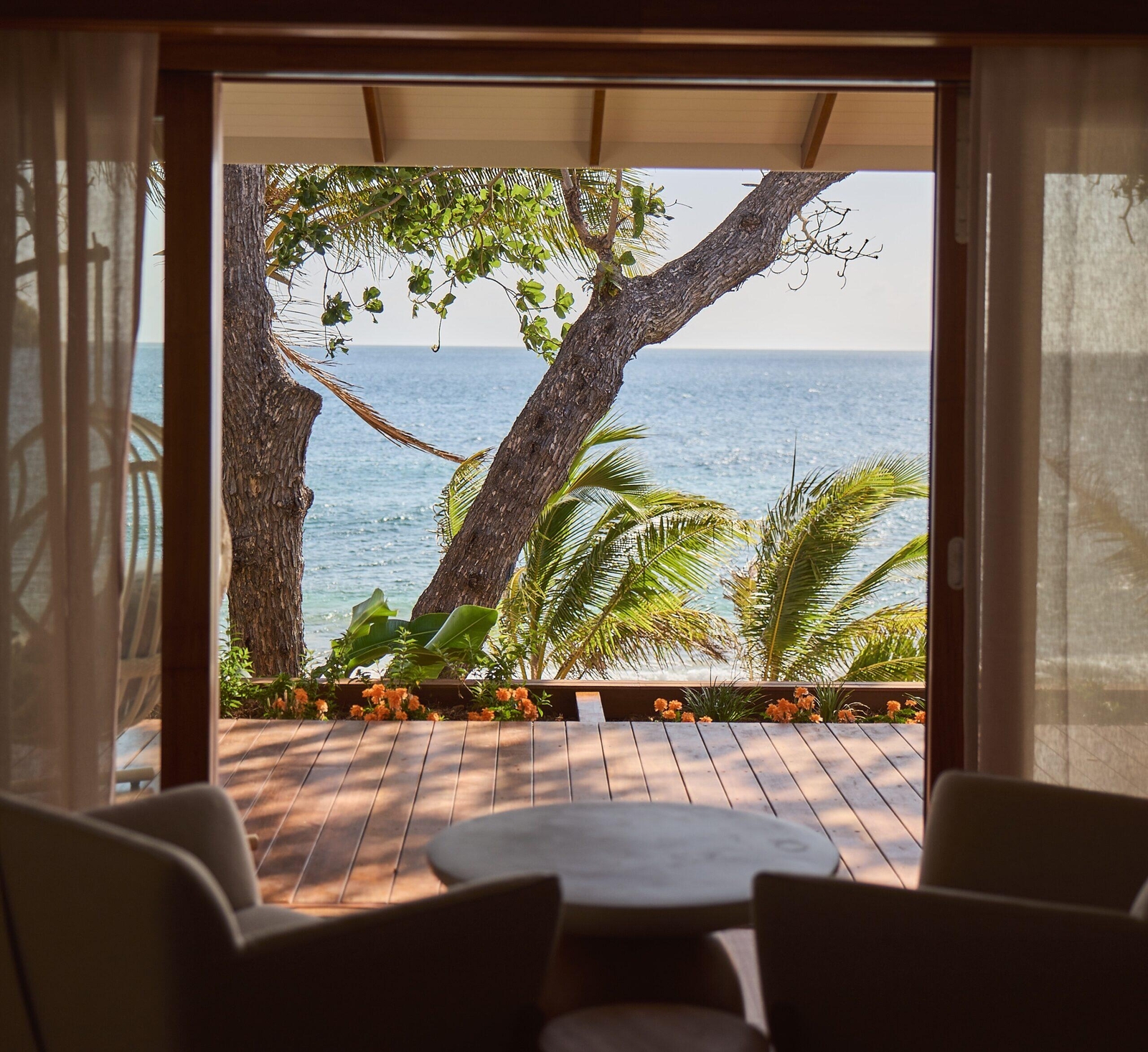 The island’s focus on well-being comes to life with sunrise beach yoga sessions, refreshing swims in the solar-heated pool and soothing massages.