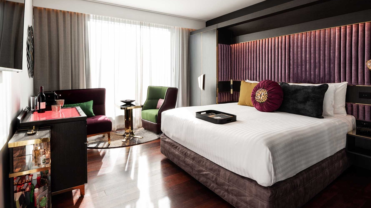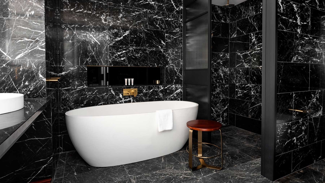 There are 184 rooms to choose from, all boasting lavish decor and finishes. Think local jarrah timber, rich velvet, polished brass and black cockatoos. The design throughout the hotel neatly combines industrial glamour and luxurious detail. Dark stone bathrooms, rich colours, bold prints and Patsy Payne sculptures add a hefty dose of elegance.