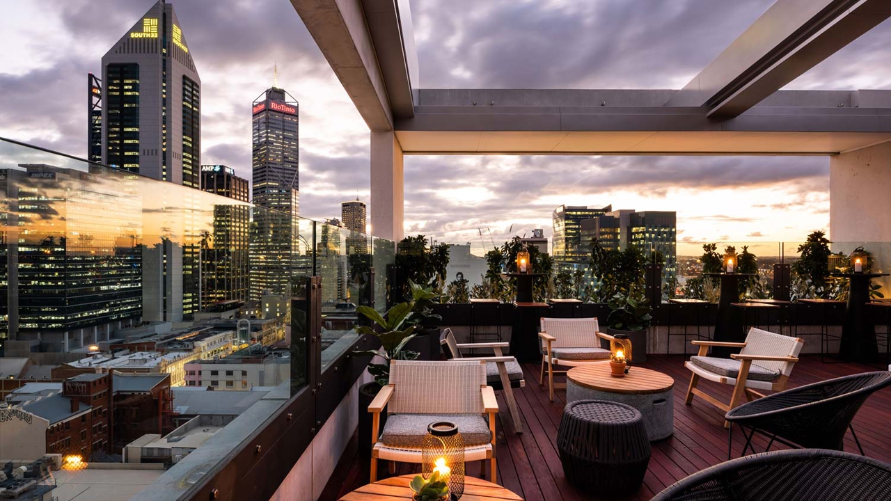 Just a stone’s throw from the winding Swan River, this chic urban oasis is set in the city’s trendy hub.