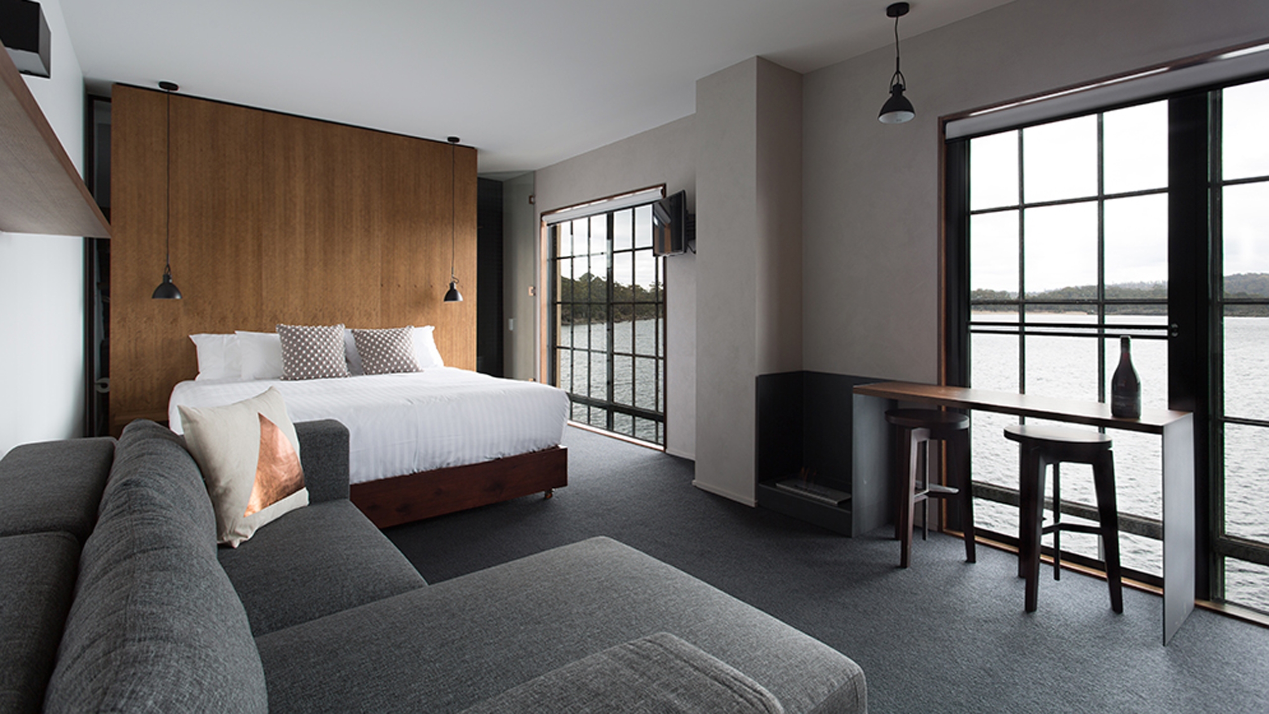 In 1940, the construction of a five-storey pumphouse began to house enormous water turbines to pump water from Lake St Clair into the nearby St Clair Lagoon. After being decommissioned in the 90s, the building was purchased and in 2015, turned into luxury accommodation. The design of Pumphouse Point is inspired by the industrial heritage of the building. Little has been done to the exterior and the interiors are simple but incredibly comfortable, so as not to detract from its character and the incredible setting.