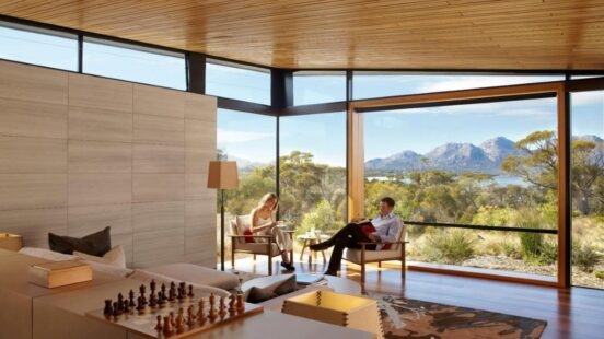 Tucked away on Tasmania’s undisturbed shores, Saffire Freycinet is a coastal sanctuary with unforgettable views. This remote paradise reflects the surrounding colours, waves, sea creatures and sand dunes, so it’s a real design gem. Its unique stingray-shaped design allows it to blend into the surrounding environment while creating an ultra-luxe modern getaway. The premium suites are truly impressive, complete with spacious living areas, a private chef and private courtyard plunge pools.