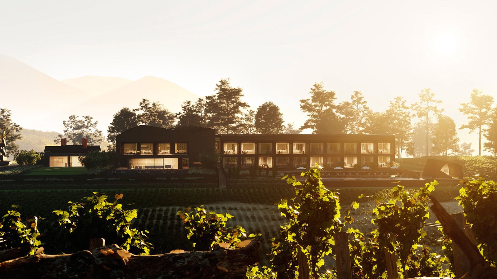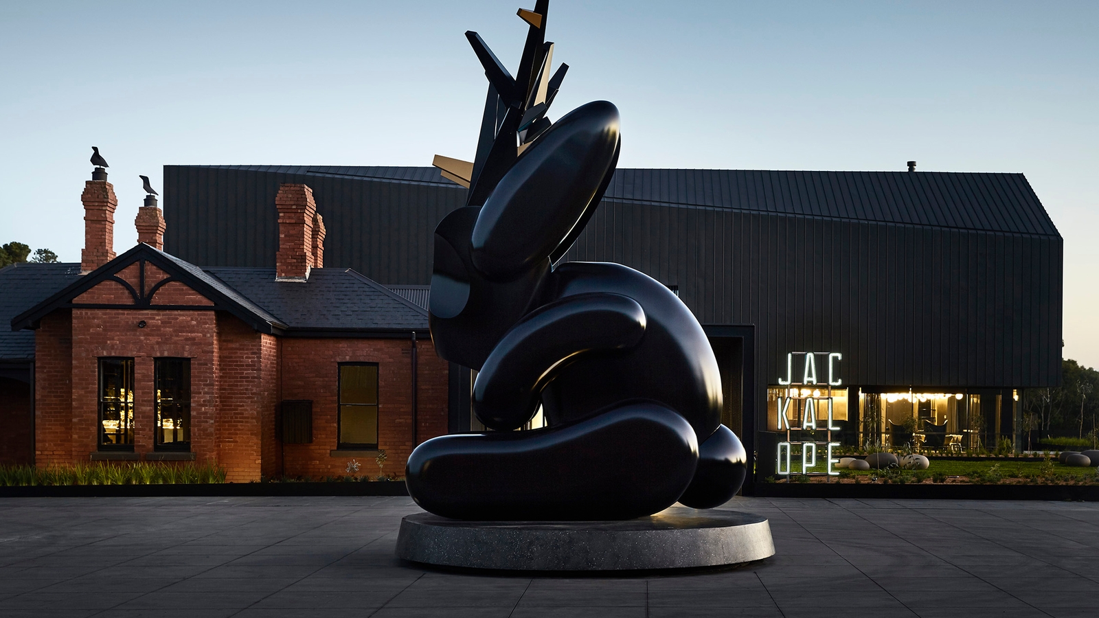 The Jackalope is an ambitious boutique hotel blending art, design, fine dining, story telling, glamour and a hint of the surreal to the surrounding Willow Creek vineyard setting. It takes it name from the legendary giant horned jackrabbit, an enormous statue of which sits out front, along with a other site-specific art installations spread across the public spaces