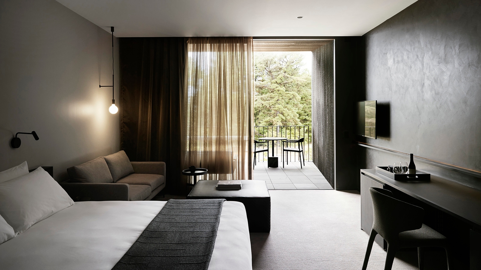 There are 46 starkly monochrome yet welcoming rooms with wonderful views and one off design pieces created by a whole host of Melbourne creatives.