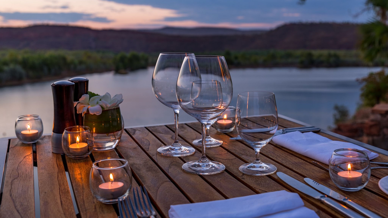 The gourmet dining is as much of an attraction as the remote and rugged landscape. The local chef prepares each meal using the highest quality ingredients, many of which are provided by the neighbouring Ord River Valley where tropical and organic produce are grown. Guests are invited to dine on the homestead’s decks or at private cliff top spot – each offering spectacular starlight views.