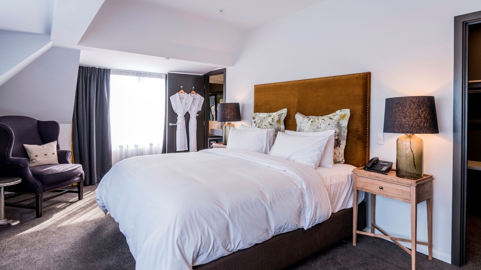 The beautifully furnished rooms make for a calm oasis while you’re visiting Christchurch. Contemporary art and luxury fabrics add a modern flavour to the décor. Each of the 26 spacious suites has its own private balcony, but the tranquil gardens also offer quiet spaces to relax, or enjoy a friendly game of croquet on the lawn.