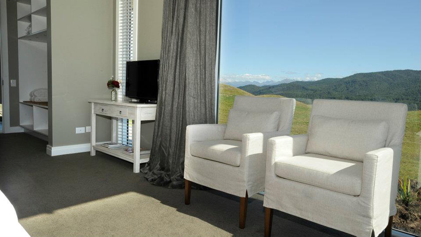 The two luxurious and comfortable rooms boast private terraces that look out over the lake and mountains. Décor-wise, every detail has been carefully considered. Relax in front of an open fire with a glass of wine in the lounge area, or soak up the gorgeous sunsets in front of a crackling outdoor fire.