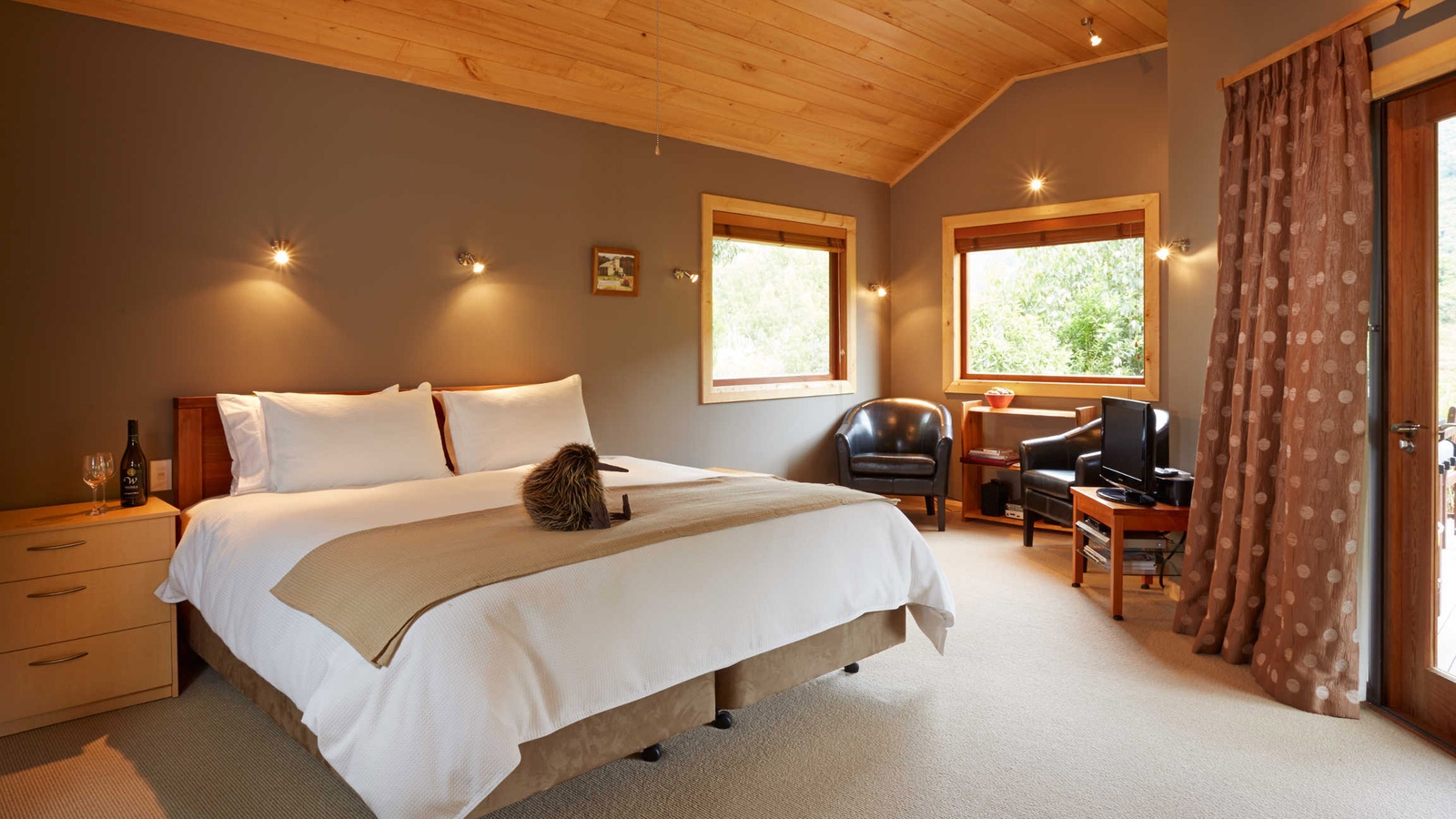Meals here are a real highlight with delicious, local produce from the garden and local area, prepared in the comfort of your chalet. Alternatively, you can enjoy a BBQ on your own deck with a glass of New Zealand wine as the sun goes down.