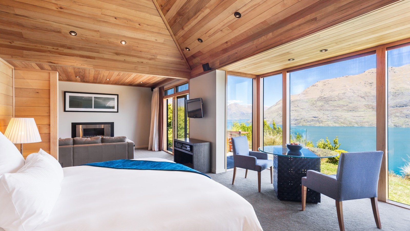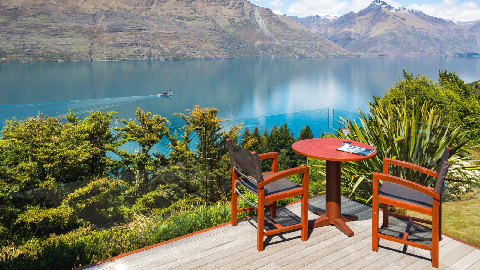 Azur Lodge consists of nine private villas set on a hilltop overlooking the surrounding mountain ranges and Lake Wakatipu.