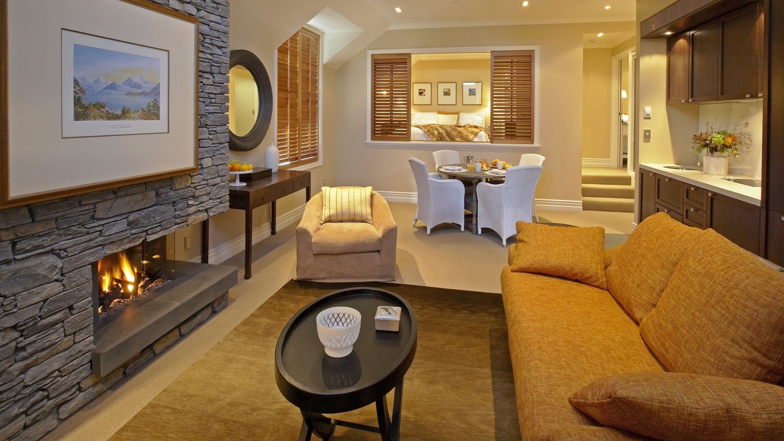 From the Homestead, relax, absorb the breathtaking views of Lake Wanaka and the surrounding mountains while being looked after by the attentive team. Inside, find two of the suites and a rustic design combining locally sourced materials and modern features with plenty of spaces to unwind including a sprawling farmhouse kitchen, large open living room, dining room and library. Outside find the two cottage suites nestled privately amongst native beech forest, swimming pool, spots for some alfresco dining as well as the impressive stables.