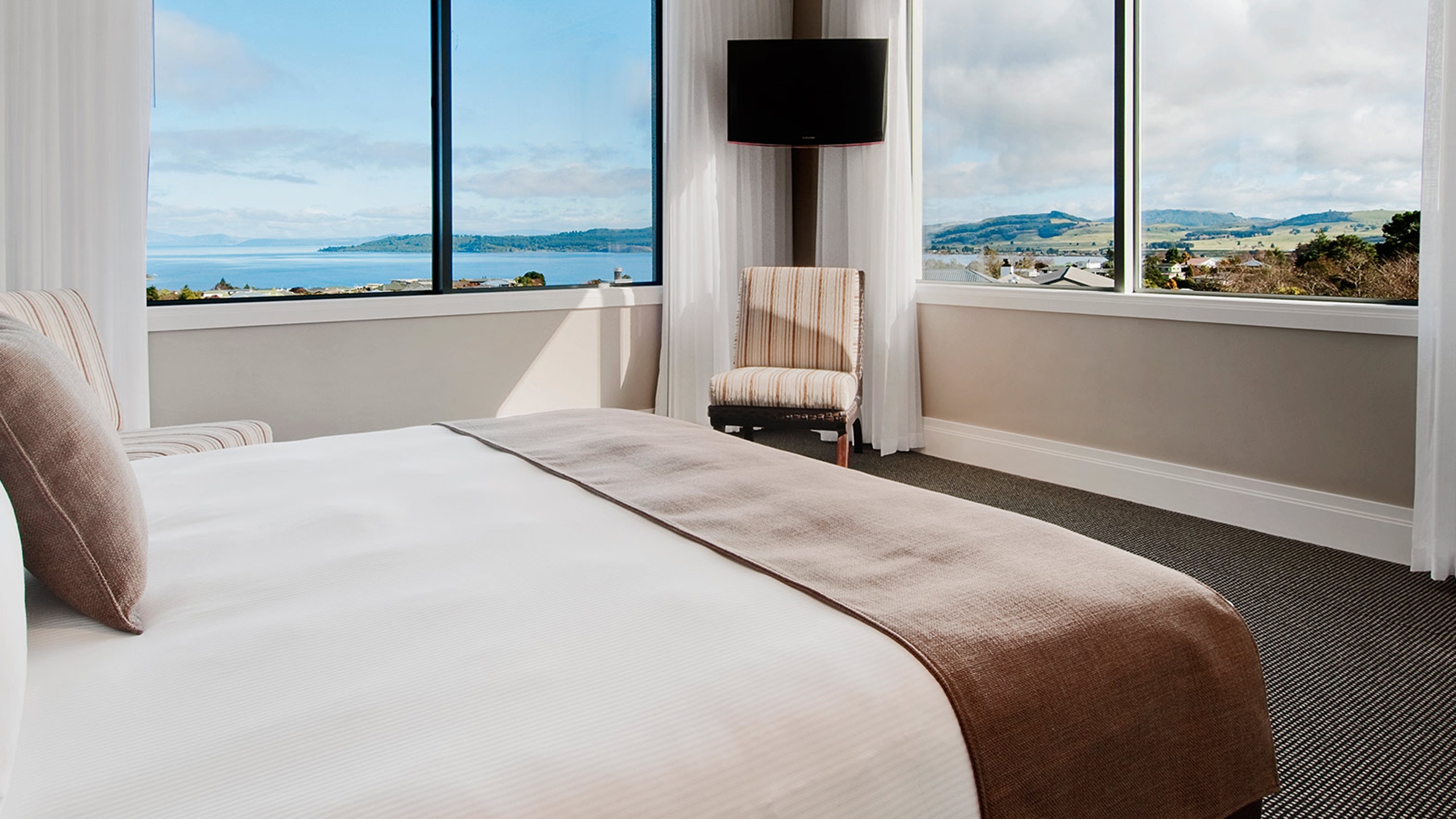 There are 113 rooms, suites and apartments to choose from, boasting views out over Lake Taupo or the Onekeneke Thermal Valley.