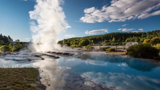An hour’s drive away, the town of Taupo rests on the northeastern shore of Australasia’s largest lake. Actually a volcano crater, this lake’s deep blue waters draws visitors from across the globe with its idyllic swimming spots, incredible landscapes and certified adventure sports. With clear day views stretching as far as the snow capped volcanoes of Tongariro National Park, Taupo is a worthy rival of nearby Rotorua.