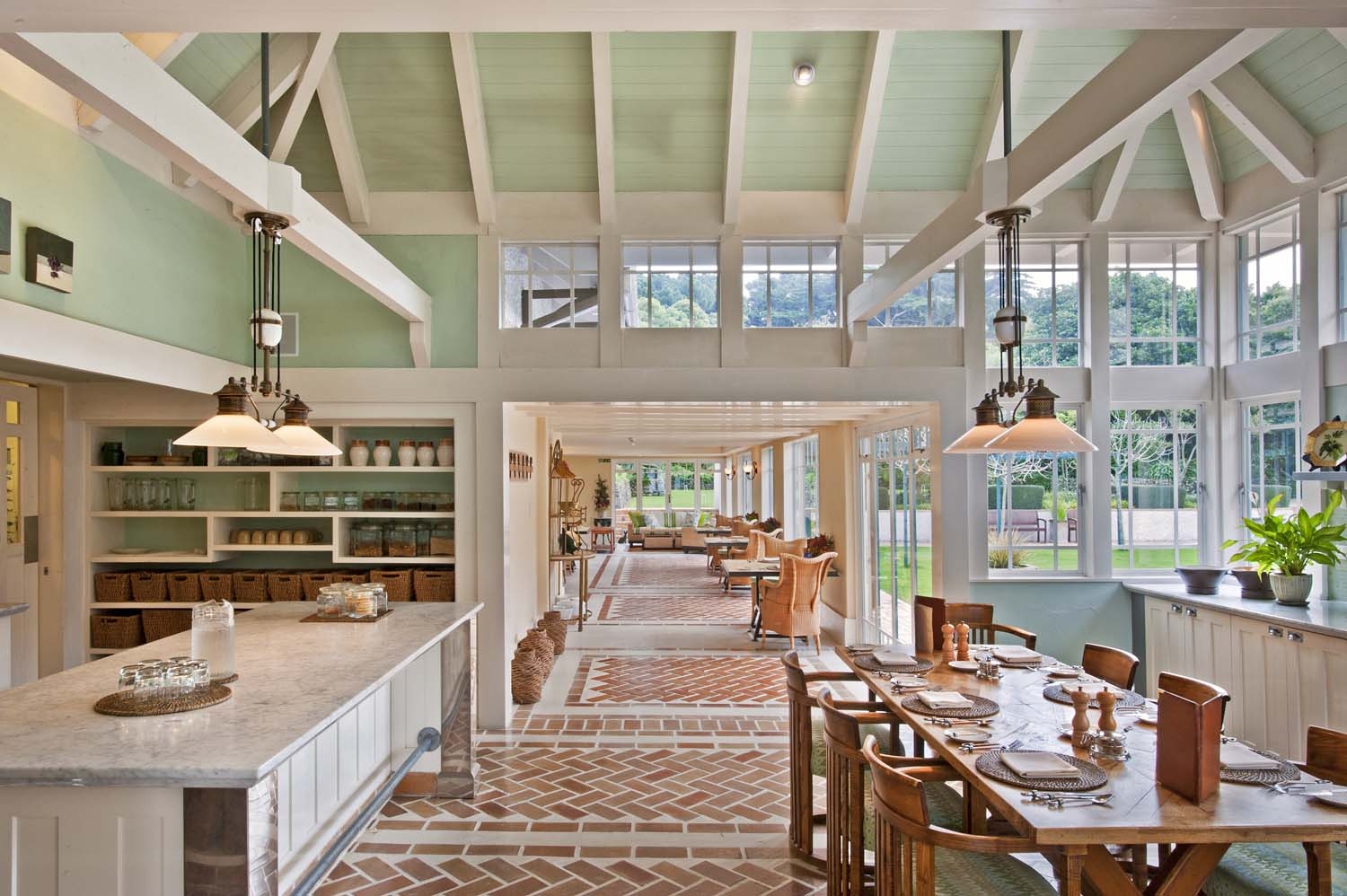 An elegant formal dining room flows through into a country kitchen and conservatory, making mealtimes extra special. The kitchen’s ‘farm to table’ philosophy means fresh produce from the lodge gardens and surrounding areas – so look out for the chefs roaming the grounds collecting the freshest ingredients for the evening meal.
