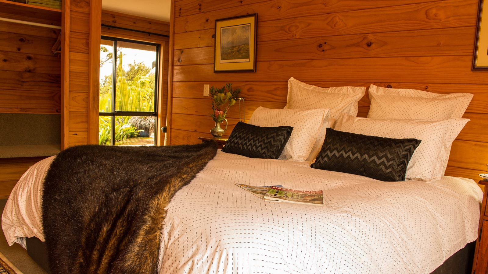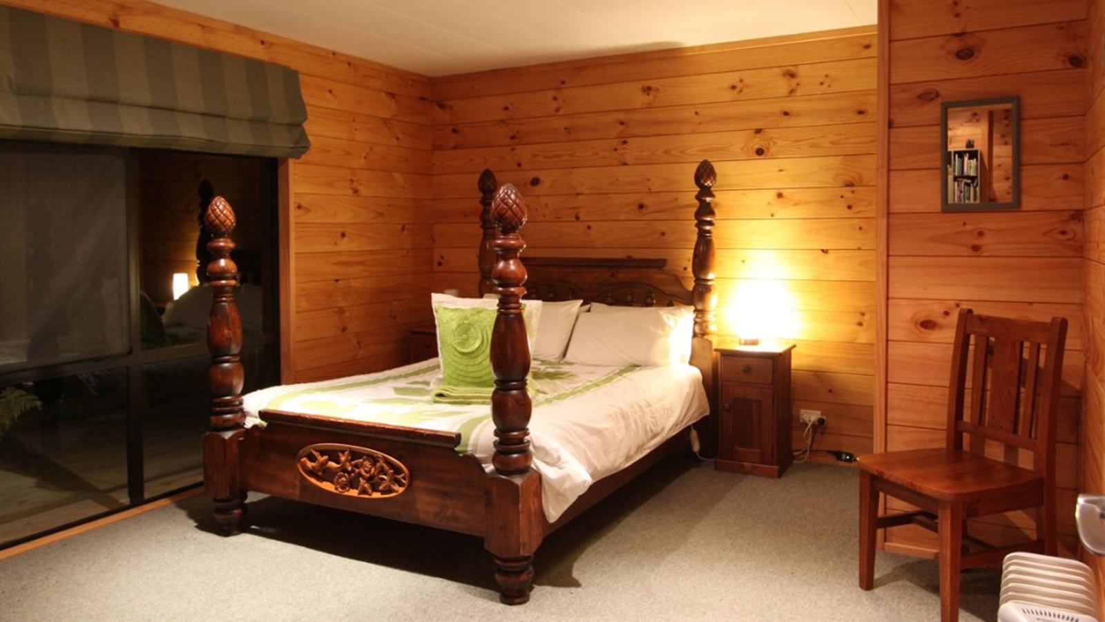 There is a spacious guest lounge complete with a roaring fire and huge windows where you can take in the view out to the ocean and the Totara Valley. There are two comfortable and traditional rooms, both offering excellent views.