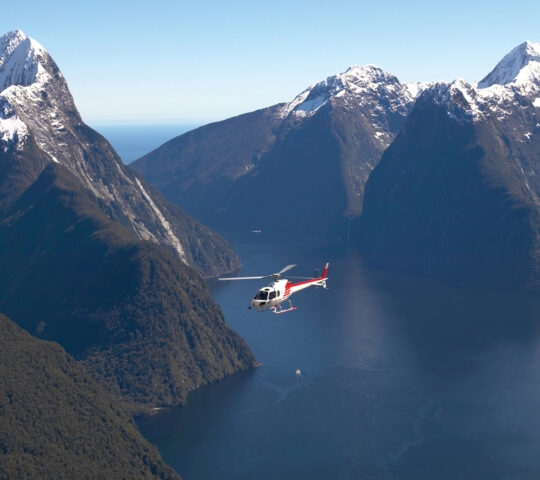 Explore Milford Sound’s stunning fjord from both the air and the water. Enjoy an exhilarating helicopter flight past spectacular rivers, valleys and mountains with blue-green ice falls, then cruise past sheer cliffs and waterfalls – keep your eyes peeled for dolphins, seals and penguins.
