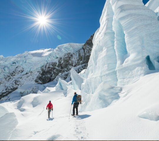 Explore the Tasman Glacier, the largest of several glaciers which flow south and east towards the Mackenzie Basin from the Southern Alps. At 27km in length, the Tasman Glacier is New Zealand’s longest glacier, up to 4km (2.5 miles) wide and 600m thick. Your helicopter will fly you from Mount Cook airport to around 1,200 metres above sea level where you will spend up to two hours in the mountains, where your guide will lead you into the most spectacular terrain that is usually seen only by experienced mountaineers. You will trek on easy undulating terrain, below Aoraki/Mt Cook and Mount Tasman, the highest peaks of the Southern Alps. The snow-covered mountains tower above vast ice-falls that bulldoze and grind down the mountain sides. Your helicopter will fly you close by the 1,000 metre high Hochstetter Icefall as your journey ends and you return to Mt Cook airport.