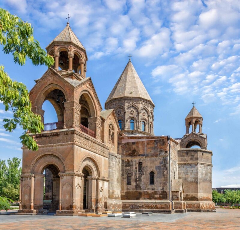 One of the most notable landmarks in the city is the Yerevan Cascade, a massive limestone staircase. Explore the gardens and fountains and you’ll spot a variety of contemporary sculptures. The sweeping views of the city and Mount Ararat from the top are excellent. From here, you can take a short walk to the Mother Armenia Monument. This large sculpture represents the Soviet victory in Word War II and commemorates the Armenian lives lost. Yerevan is also home to the ruins of Zvartnots Cathedral, a medieval Armenian cathedral that was built in the seventh century. Its circular exterior structure is unique in medieval Armenian architecture.