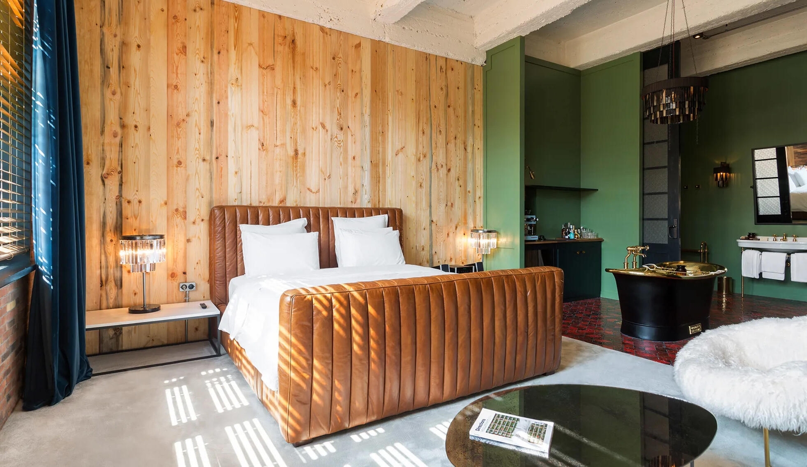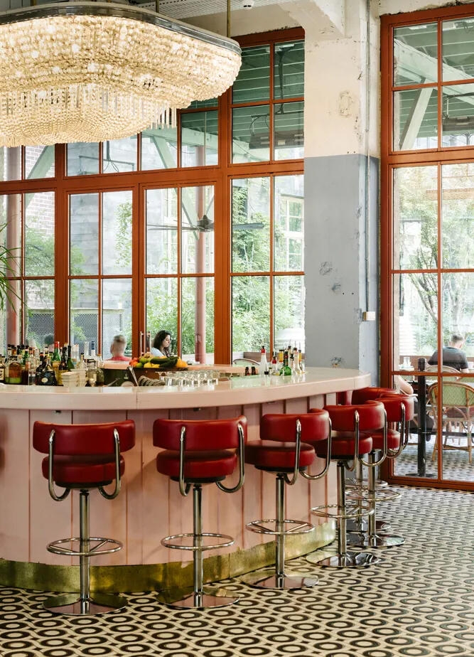 With nostalgic references to the roaring 1920s and glamorous 1930s, Stamba Hotel is set in a former Soviet structure in Tbilisi. The old printing house’s original features have been repurposed, with the publisher’s print-drying beam now supporting foliage in the five-story “jungle lobby” atrium. The design in the public areas and rooms highlights the industrial splendor of the Soviet era with modern touches giving it a contemporary edge. Large warehouse windows blur the boundaries between inside and out, while internal steel balconies line the hotel’s upper levels for great views onto the greenhouse-inspired atrium.