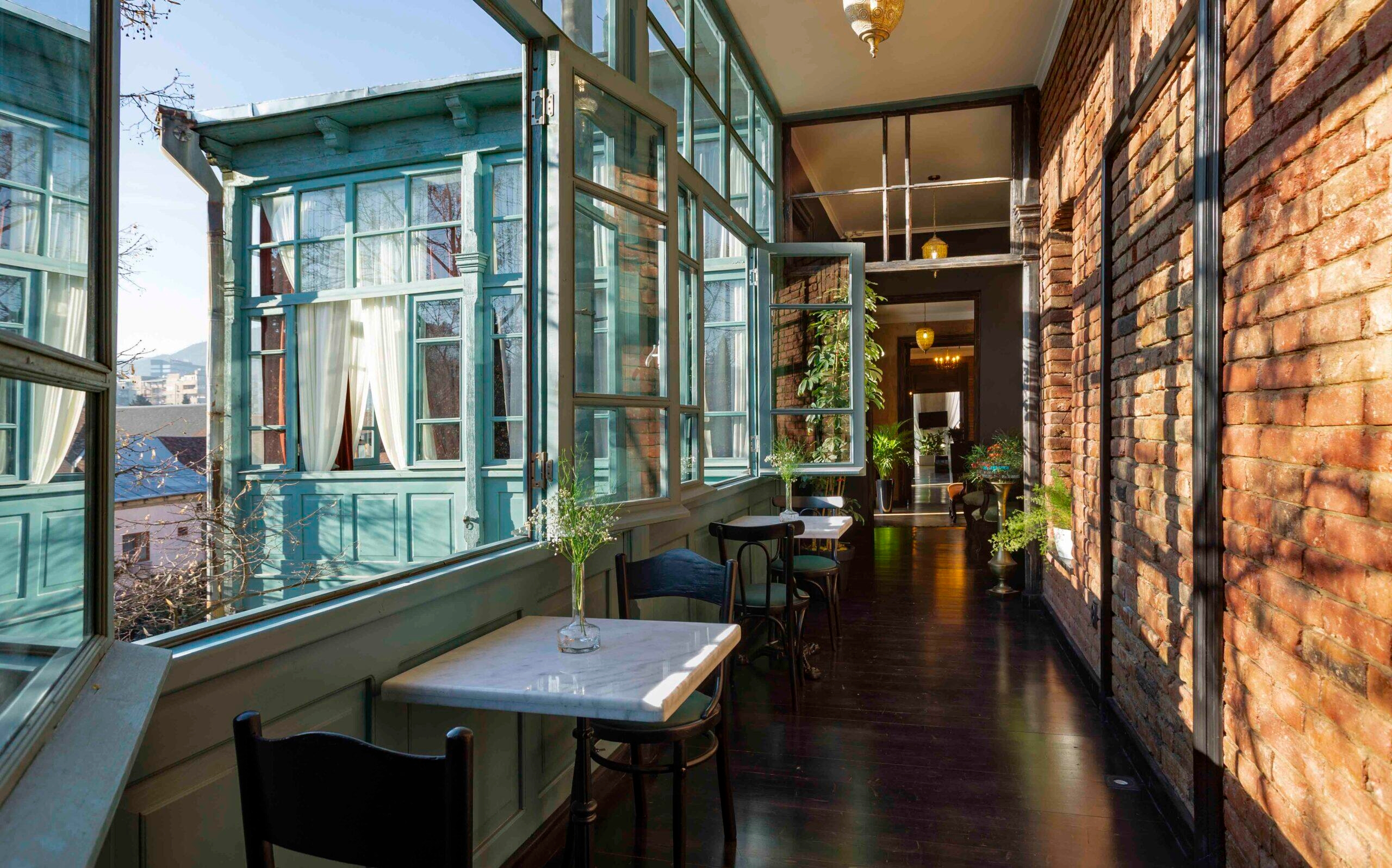 Rooms and suites have high ceilings and vintage lighting, and you can enjoy home comforts, like window seats, armchairs and rattan outdoor furniture on balconies. In the stylish bathrooms you can enjoy walk-in showers with water-efficient rainfall shower heads. The ground floor is home to the Unfound Door gastro-bar where Georgian-European cuisine is served using locally sourced produce, and vegetarian and vegan options are available. At the end of a long day, settle into a tall chair at the low-lit bar and enjoy a hand-mixed cocktail or glass of wine from the curated list.