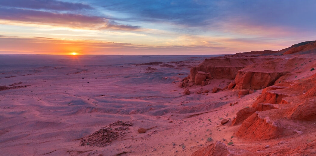 This fabled land tells the story of thousands of years of history; the footsteps of Khans and nomads alike echo in the dust, with ancient petroglyphs carved into red rock cliffs a lasting testament to their survival in this unforgiving landscape. In folklore, it’s known as the land of dragons, and, upon seeing the fossilised dinosaur remains found at the red ‘flaming cliffs’, you might almost believe it.