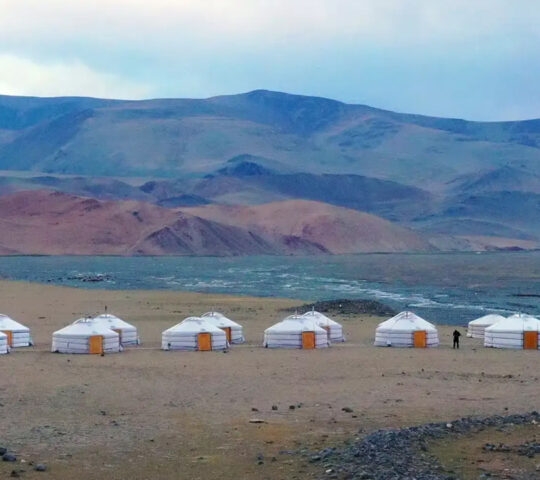 Fly to Hovd and then drive to Tsambagarav Mountain Area where you’ll find Three Eagle Camp located at the base of permanently snow-capped Tsambagarav Mountain. The valley is home to the Uuld community of people, descended from the Zungarian Empire that rose after the fall of the Yuan Dynasty. One of the wildlife highlights of this region is the stunning Khar Yamaat canyon. Take a hike here, keeping an eye out for the elusive Siberian ibex. This species of mountain goat is known for its impressive horns and can often be spotted in the rocky terrain of the valley.