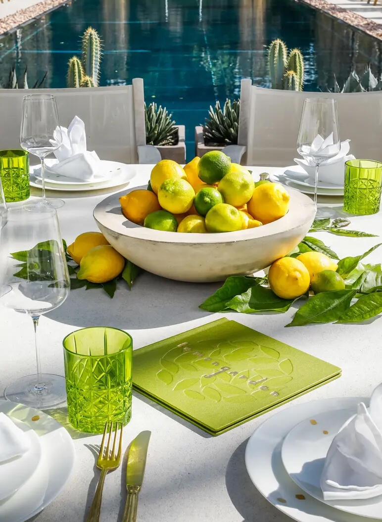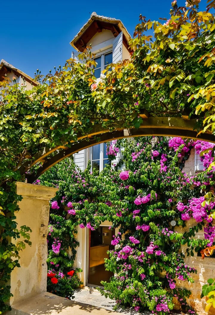 Lush gardens filled with roses and lemon trees