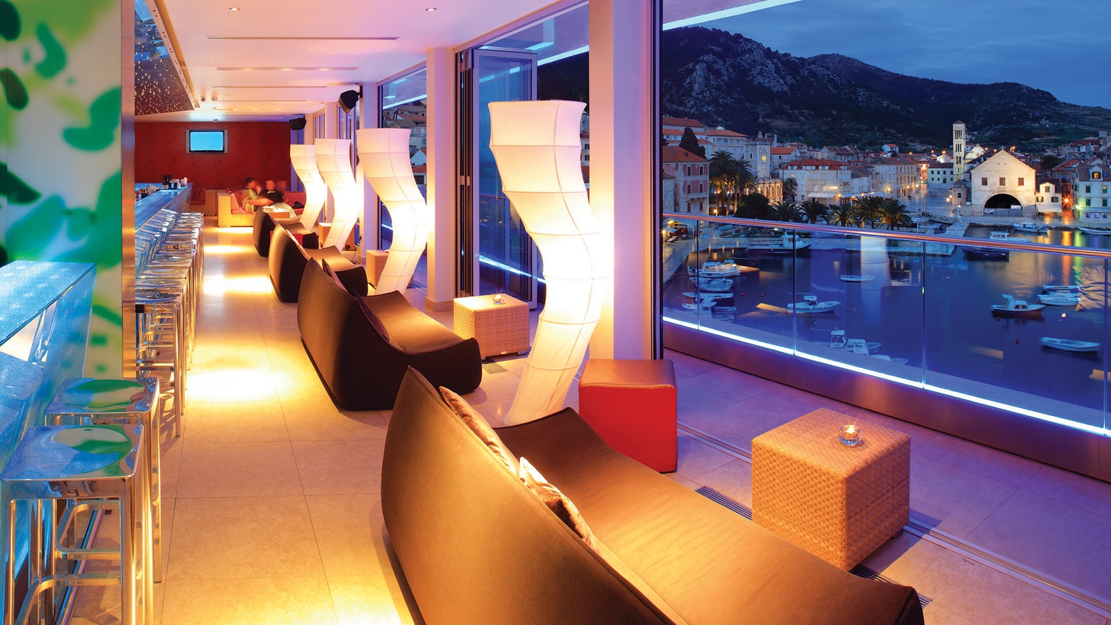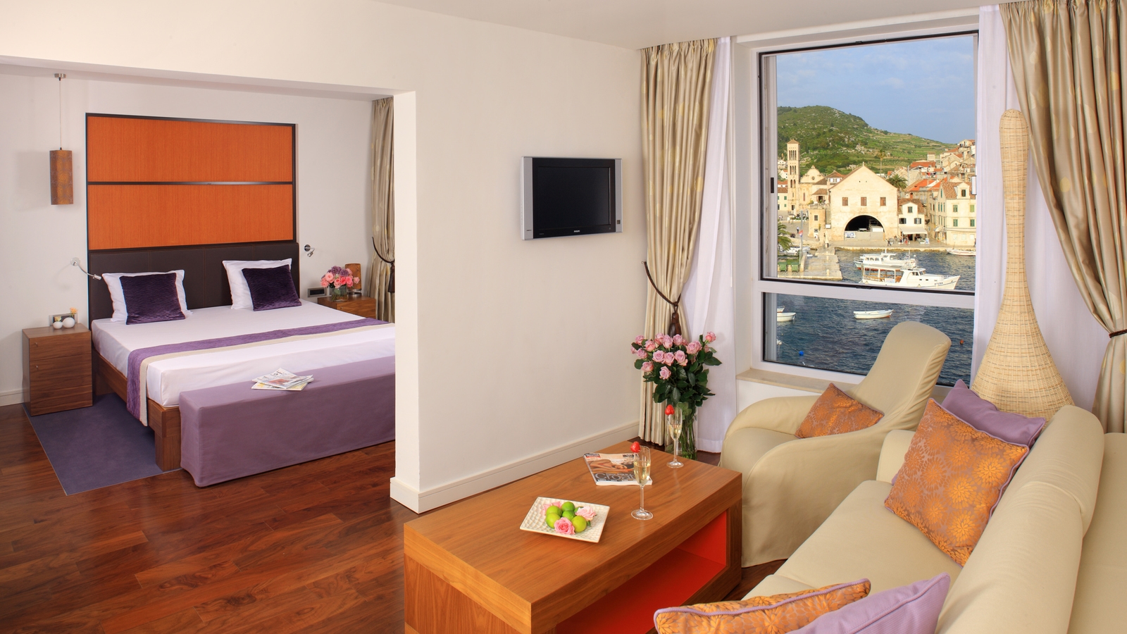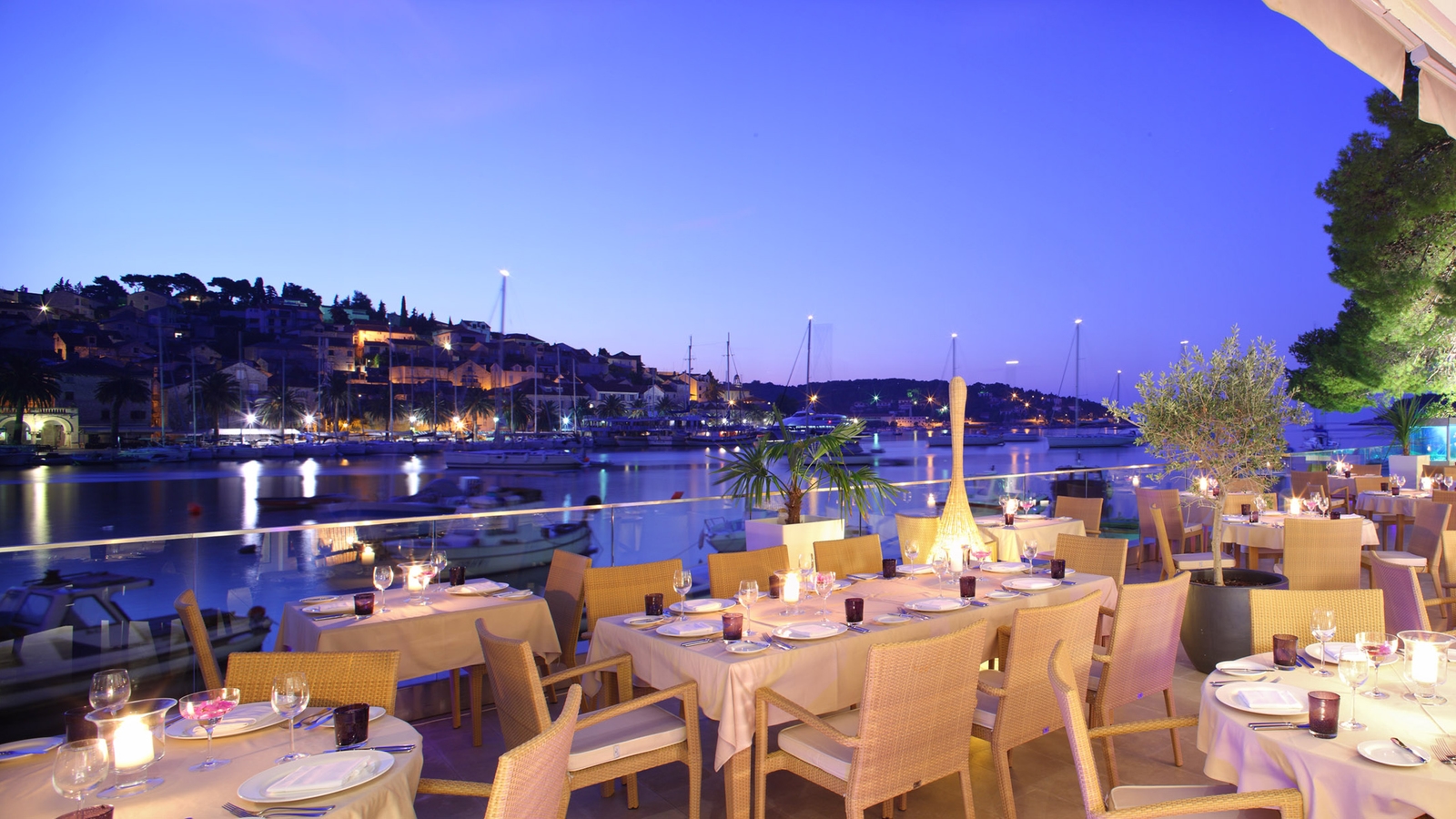 The hotel offers two dining options; Val Marina for sumptuous Mediterranean classics and the contemporary Lobby Bar – a great place for a pre-dinner drink or dining throughout the day. For a drink with a view, head to the Top Bar with its wraparound terrace from where you can look out over the ancient city, harbour and out towards the Paklinski Islands.